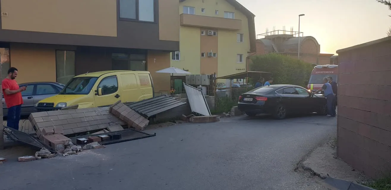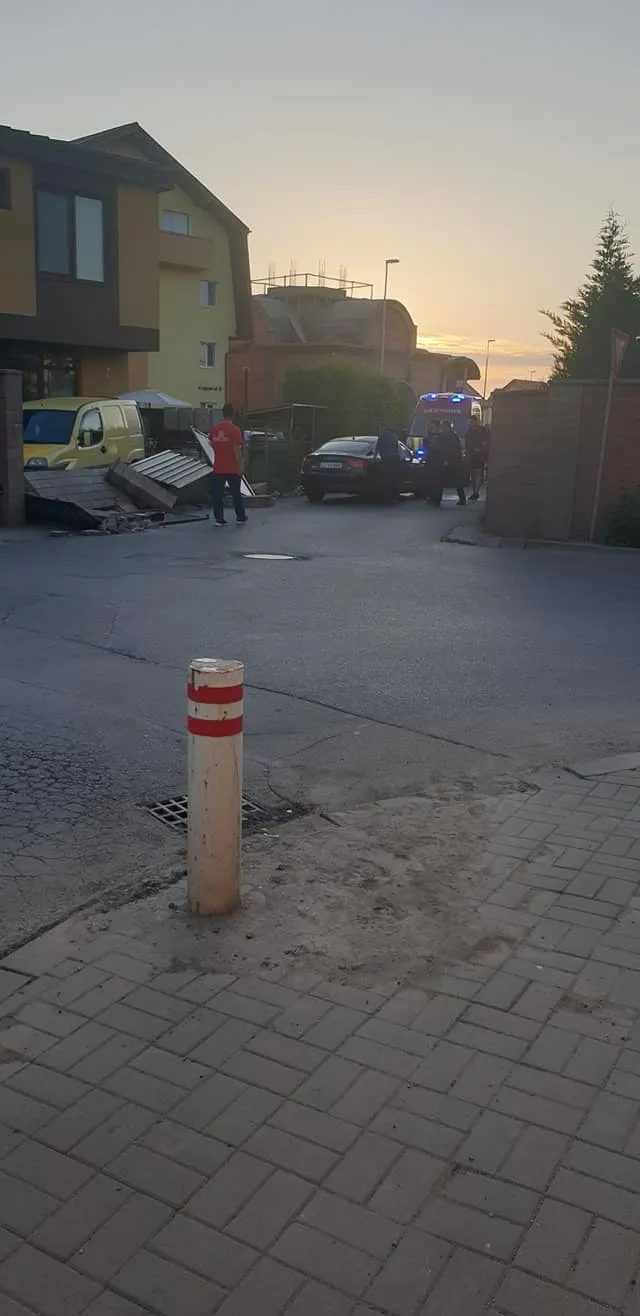 Din imagini reiese că șoferul nu a mai luat curba cum trebuie, ci a intrat în gardul imobilului.