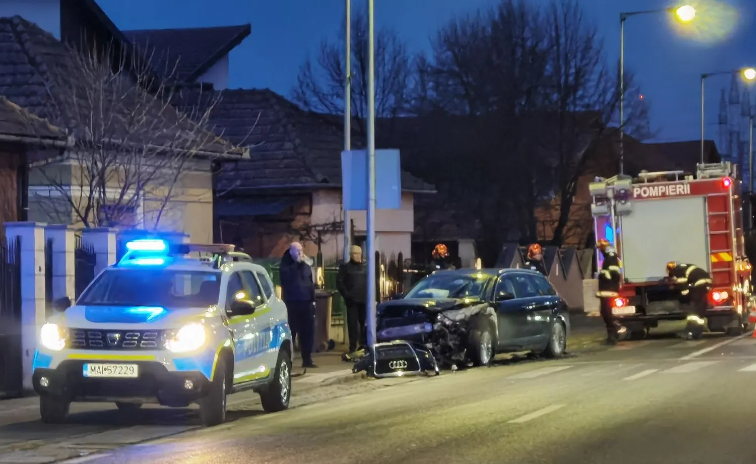 Accident în Florești, județul Cluj: Un Audi a ajuns într-un stâlp, pe trecerea de pietoni. „Noroc că la ora aia nu traversa nimeni”