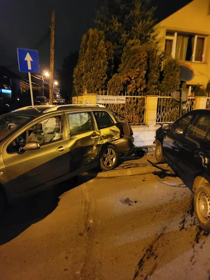 Strada Septimiu Albini este drum cu prioritate, iar șoferul din Peugeot ar fi trebuit să oprească.