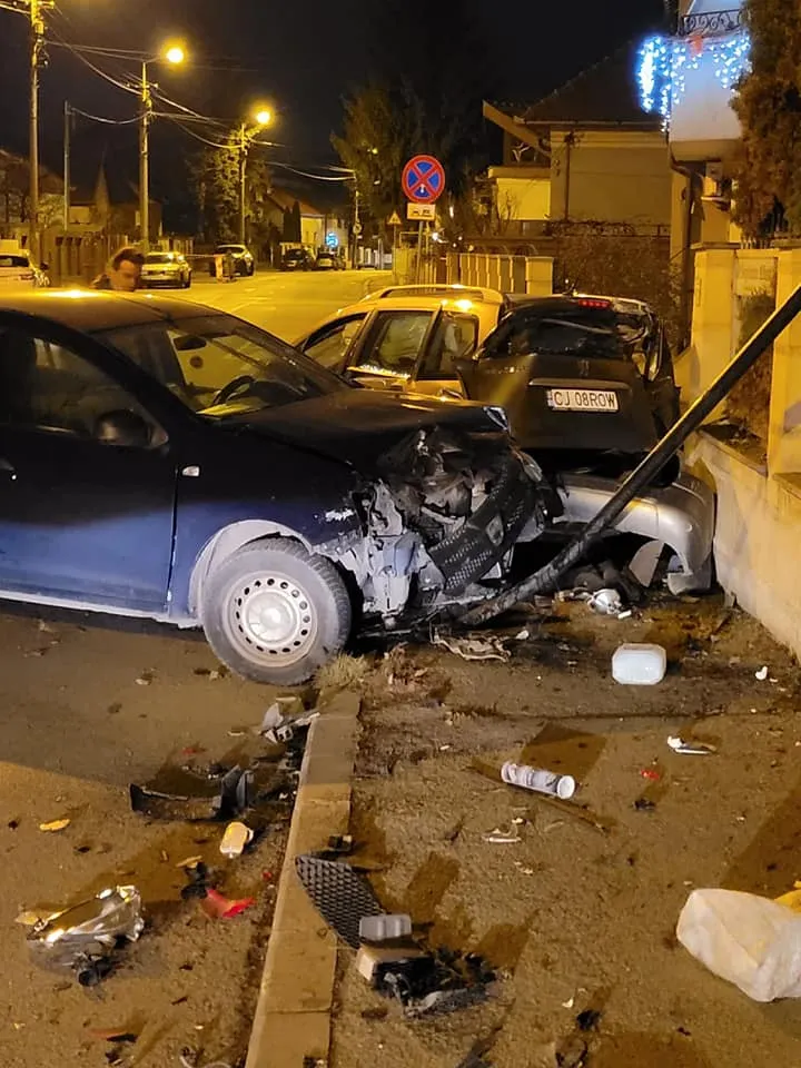 Din fericire nimeni nu a fost rănit, drumul fiind gol. Cele două autoturisme sunt avariate serios, ajungând pe trotuar și în gardul unei case.