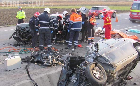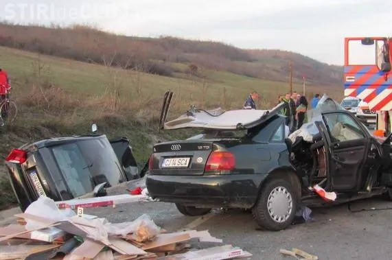 Șoferul unui Audi care venea de la Cluj-Napoca a intrat în depășire și a lovit un Hyunday care circula din sens opus. Impactul a fost foarte violent, iar ultima mașină a fost proiectată în șanțul de beton de pe marginea drumului.
