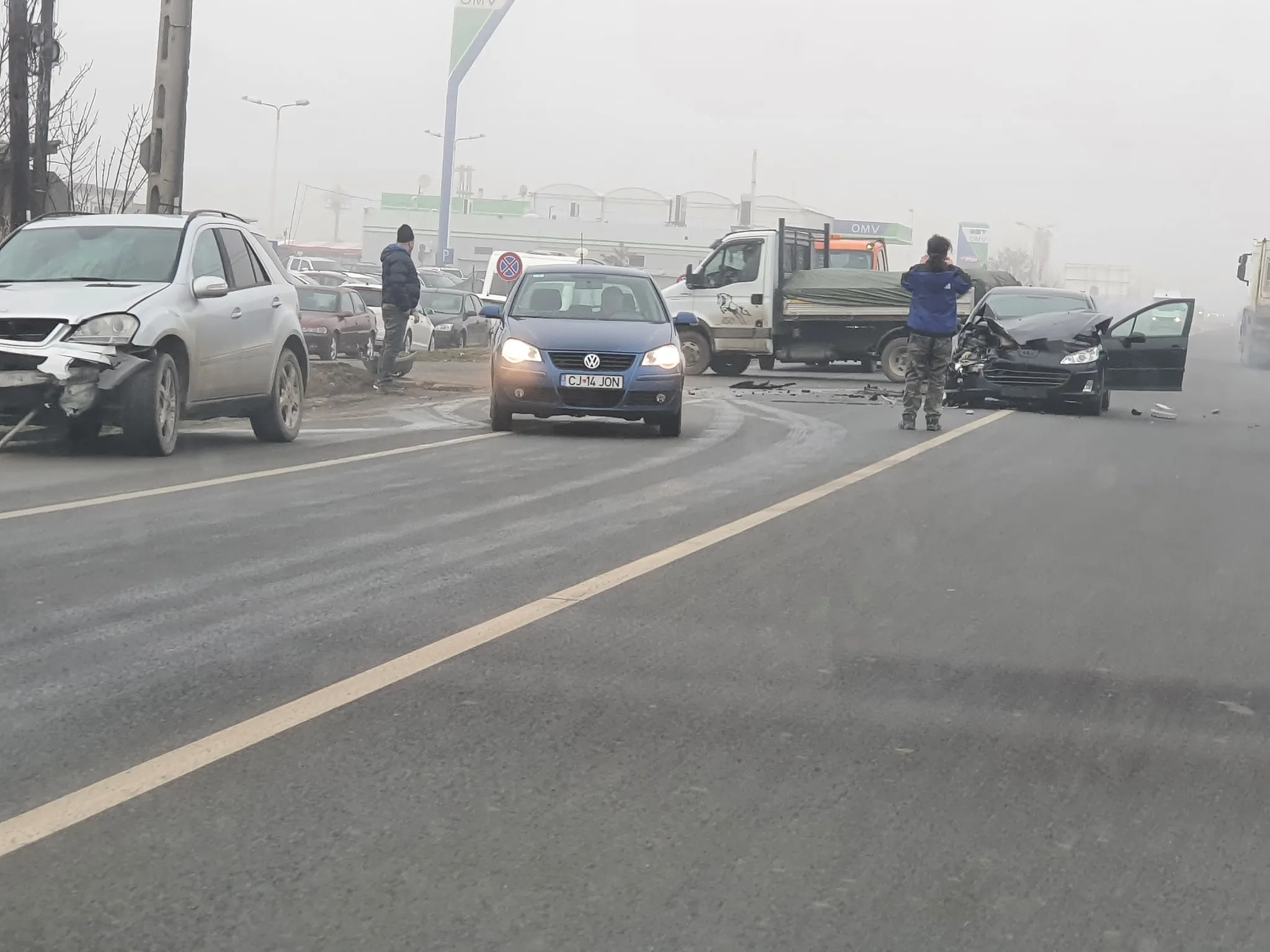 Accident în Gilău, în zona OMV! Două mașini s-au lovit și traficul este afectat - FOTO
