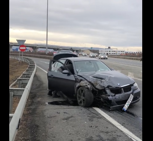 Accident în Gilău, la ieșire de pe Autostrada Transilvania. BMW implicat - VIDEO