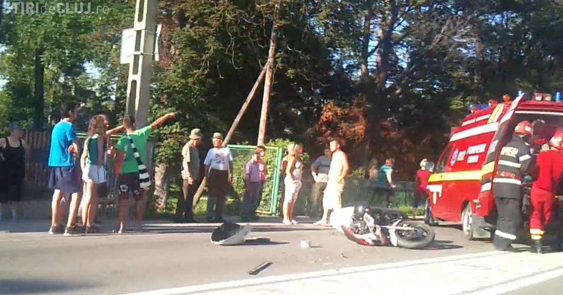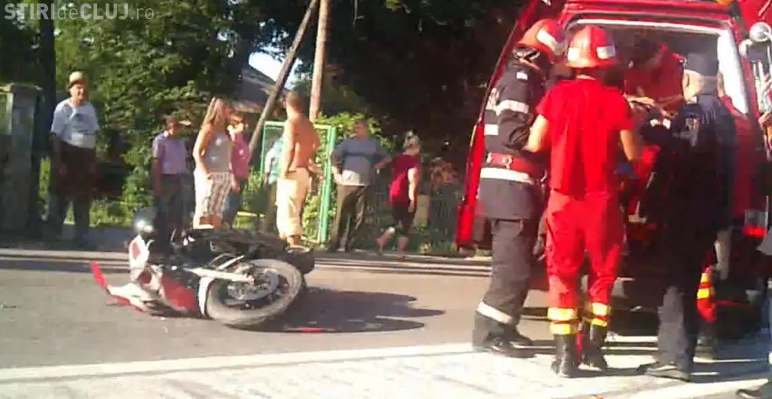 Accident în Gilău! Un motociclist a fost rănit - VIDEO UPDATE