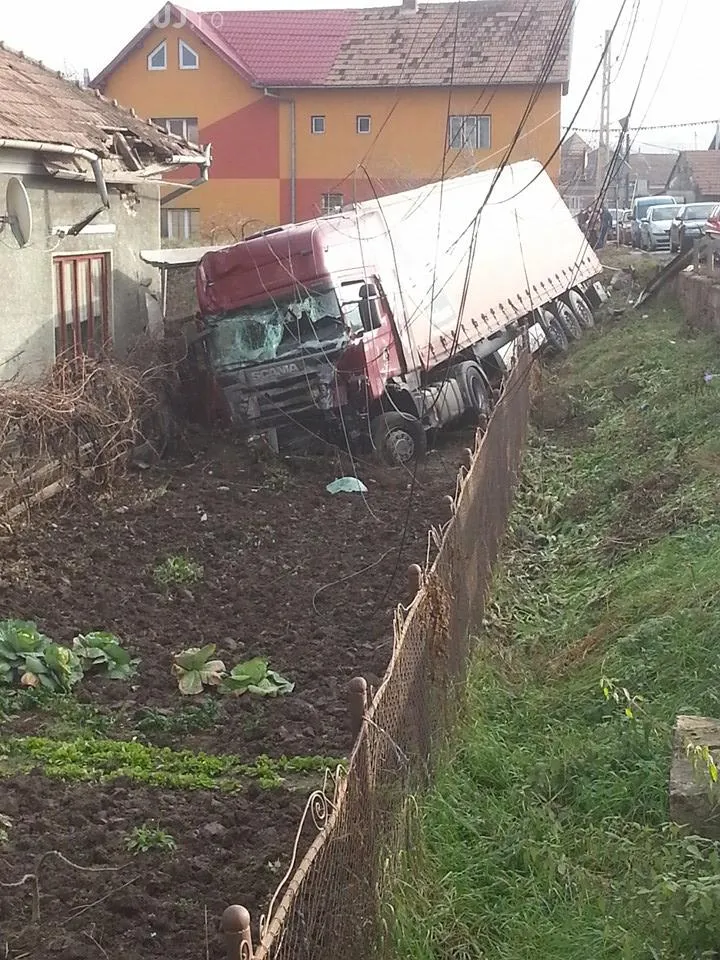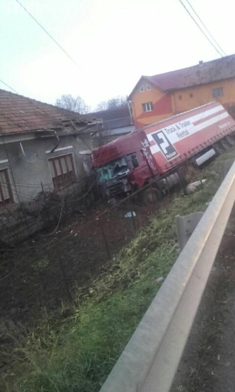 Un șofer polonez, aflat la volanului unui TIR, a pierdut controlul asupra volanului, a pătruns pe contrasens și a lovit mai multe mașini, după care a intrat în casa unui localnic.