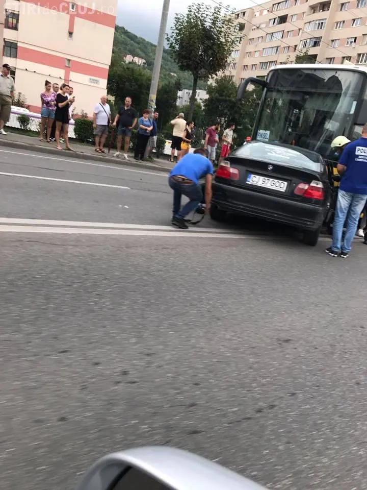 Un BMW a intrat sub un autocar, în capătul cartierul Grigorescu, în zona podului peste Someș.