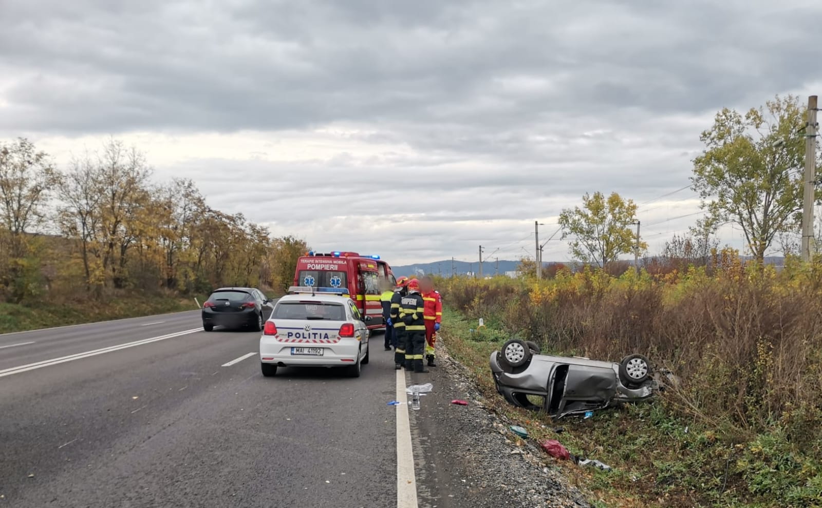 ACCIDENT în Jucu! O femeie a ajuns la spital după ce o mașină s-a răsturnat - FOTO