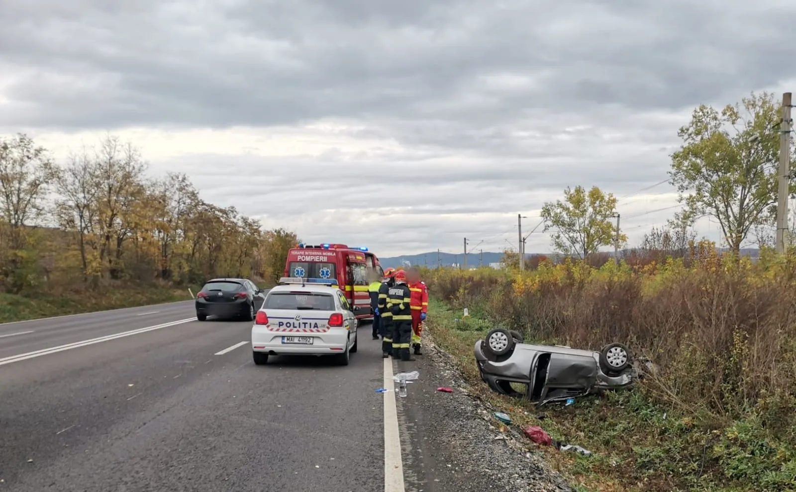 „În accident a fost implicat un singur autoturism, care era răsturnat în momentul în care au ajuns forțele noastre la fața locului.