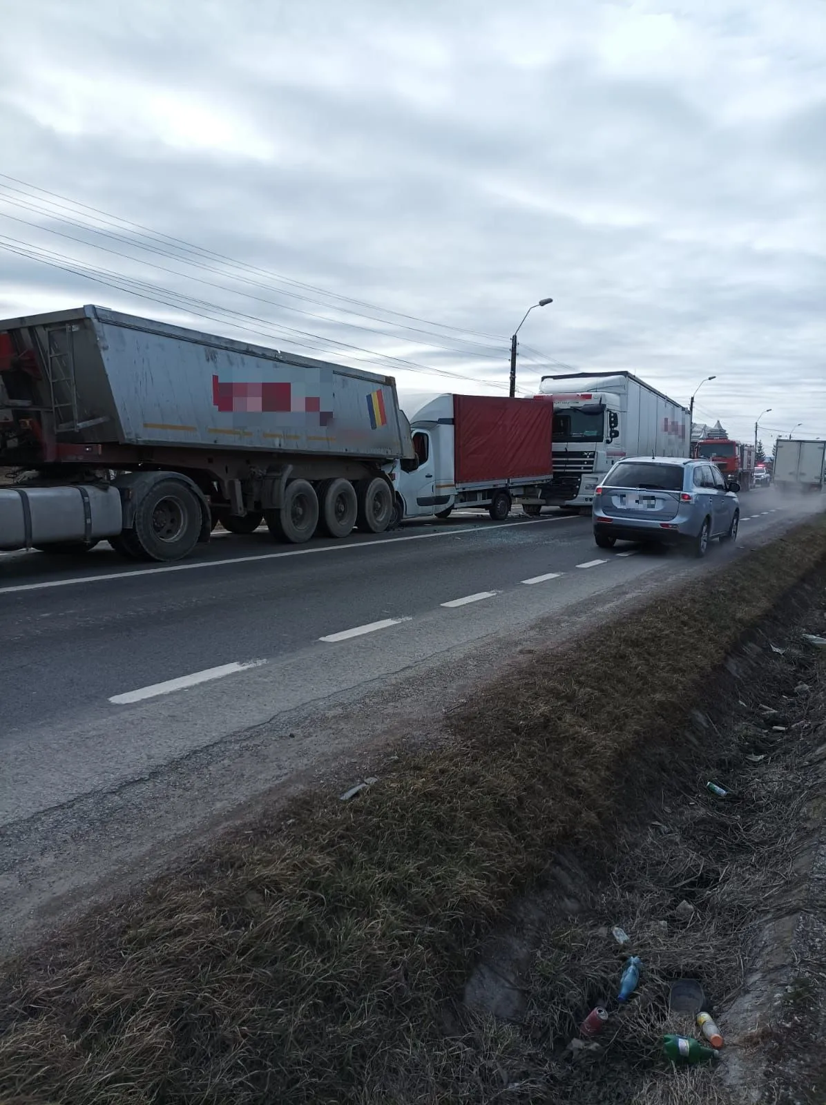 Potrivit primelor informații, circulația a fost blocată din cauza unei coliziuni dintre un TIR, un camion și o basculantă