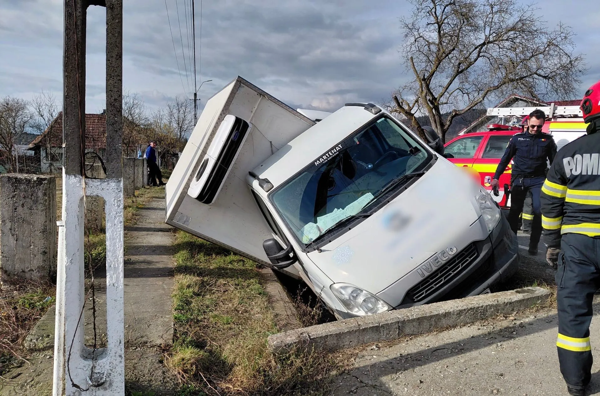 Astăzi după-amiază, pompierii și echipajele medicale au intervenit la un accident rutier în localitatea Câțcău, unde au fost implicate mai multe vehicule, inclusiv un autocamion și o autoutilitară care a ieșit de pe șosea.