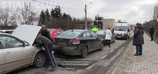 Accident în lanț la întrare în Dej. Șoferul unui BMW a pus frână și a fost lovit de alte două mașini VIDEO