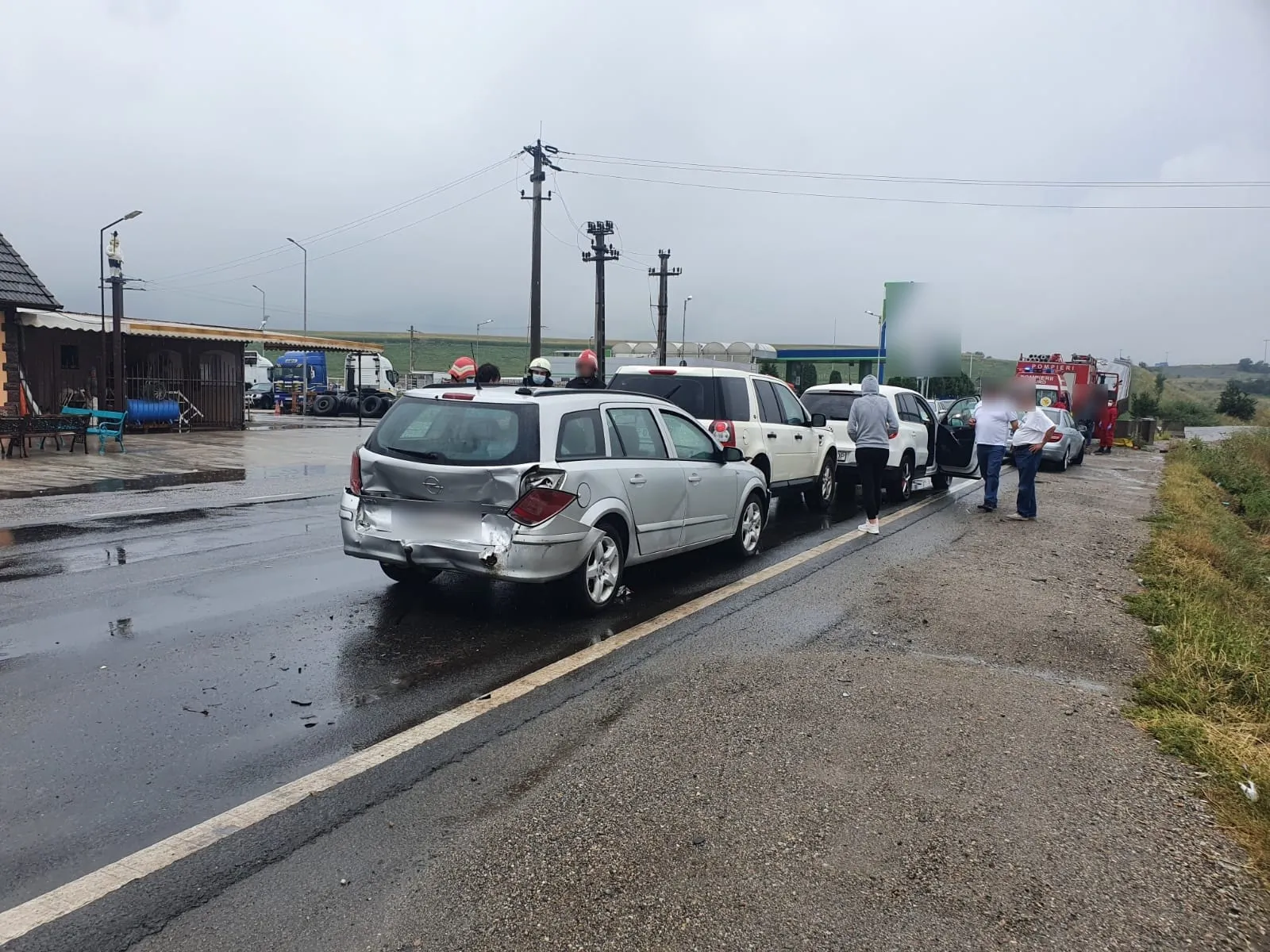 Solicitarea a venit în jurul orei 14.30, iar în momentul sosirii pompierilor la fața locului au găsit un autocamion și patru autoturisme avariate.