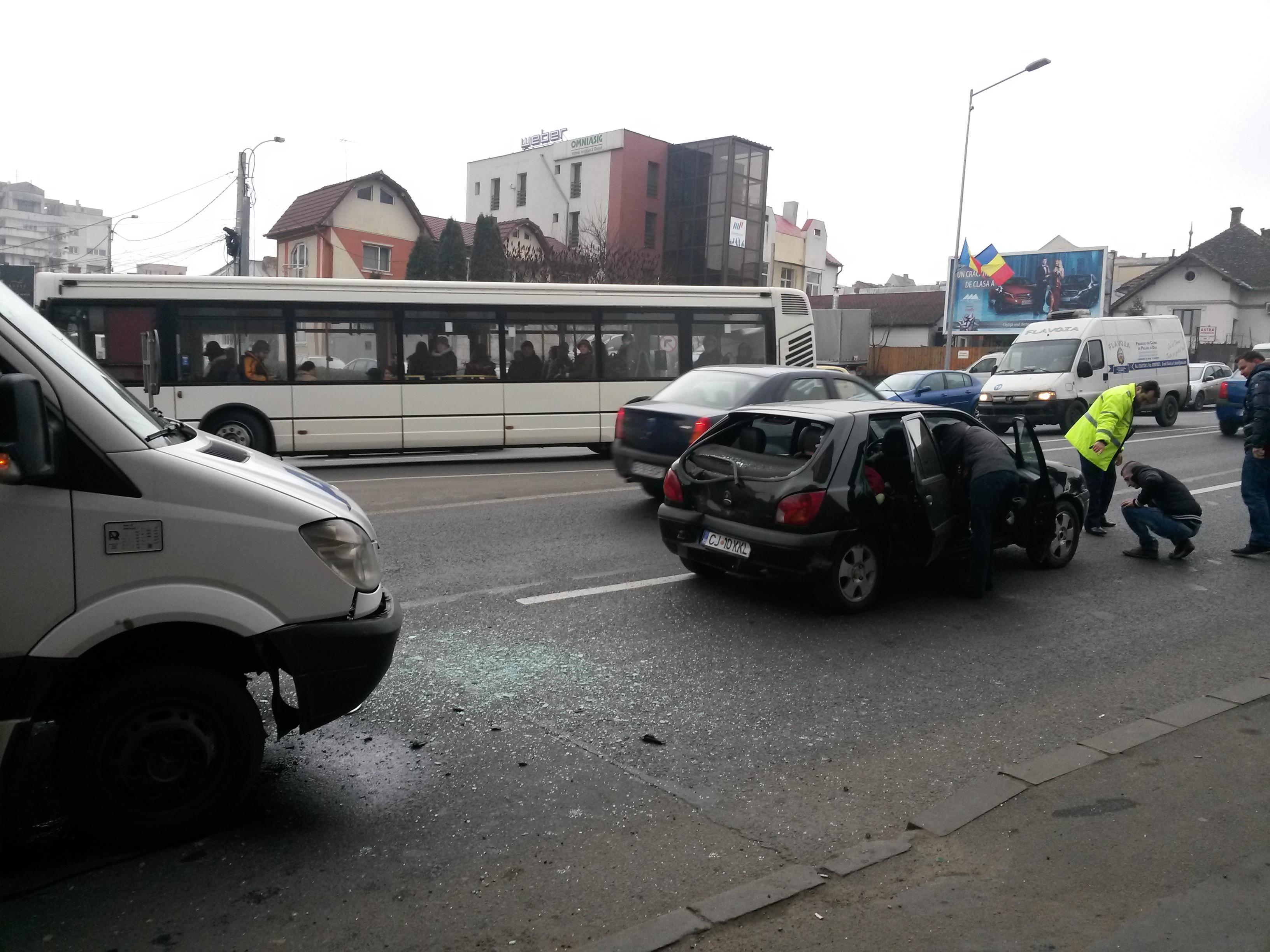 Un accident în lanț, produs pe Calea Turzii, joi, în jurul orei 12.30, a dat și mai tare peste cap traficul în zona Piața Cipariu, Calea Turzii, strada Avram Iancu.