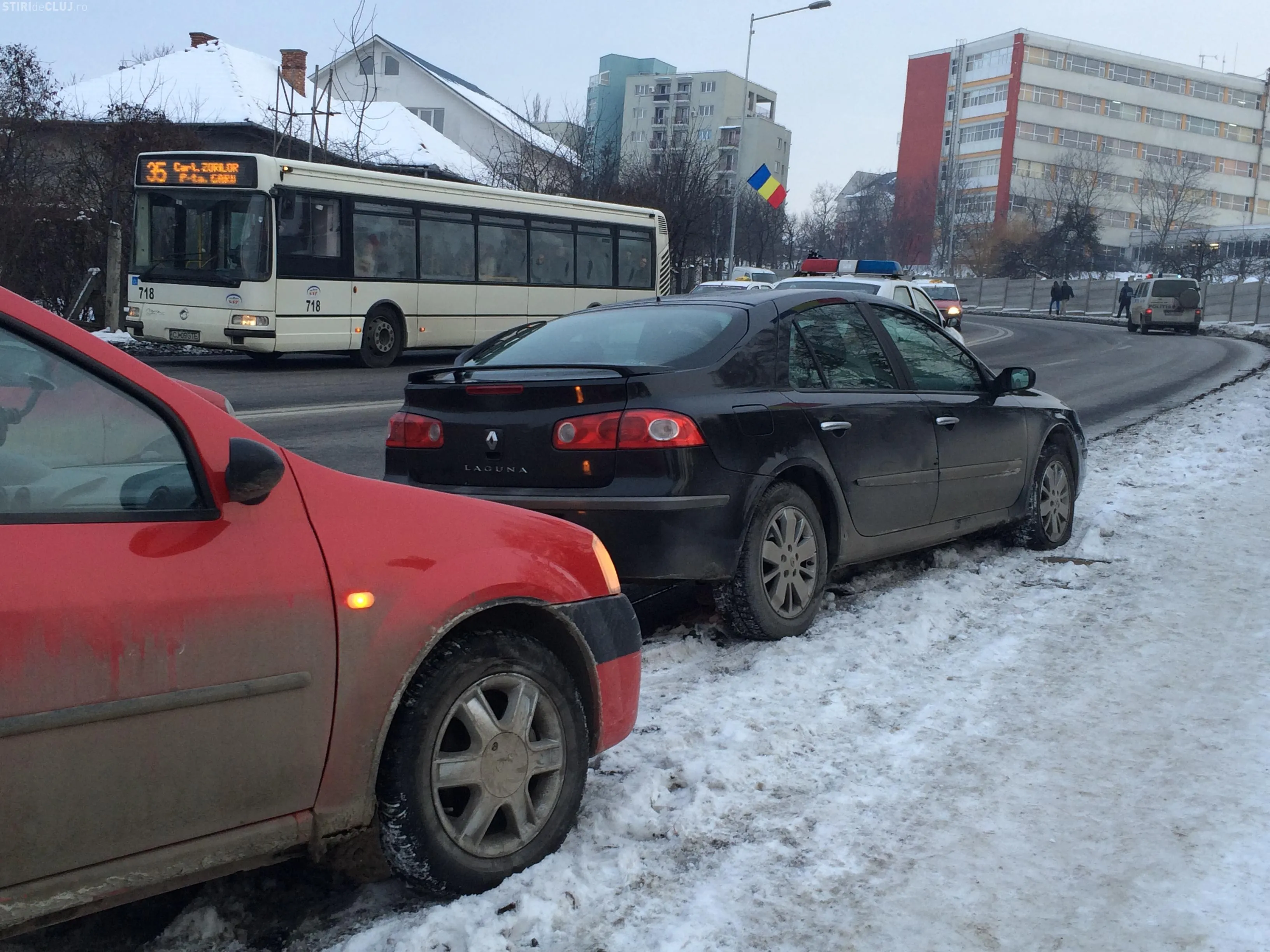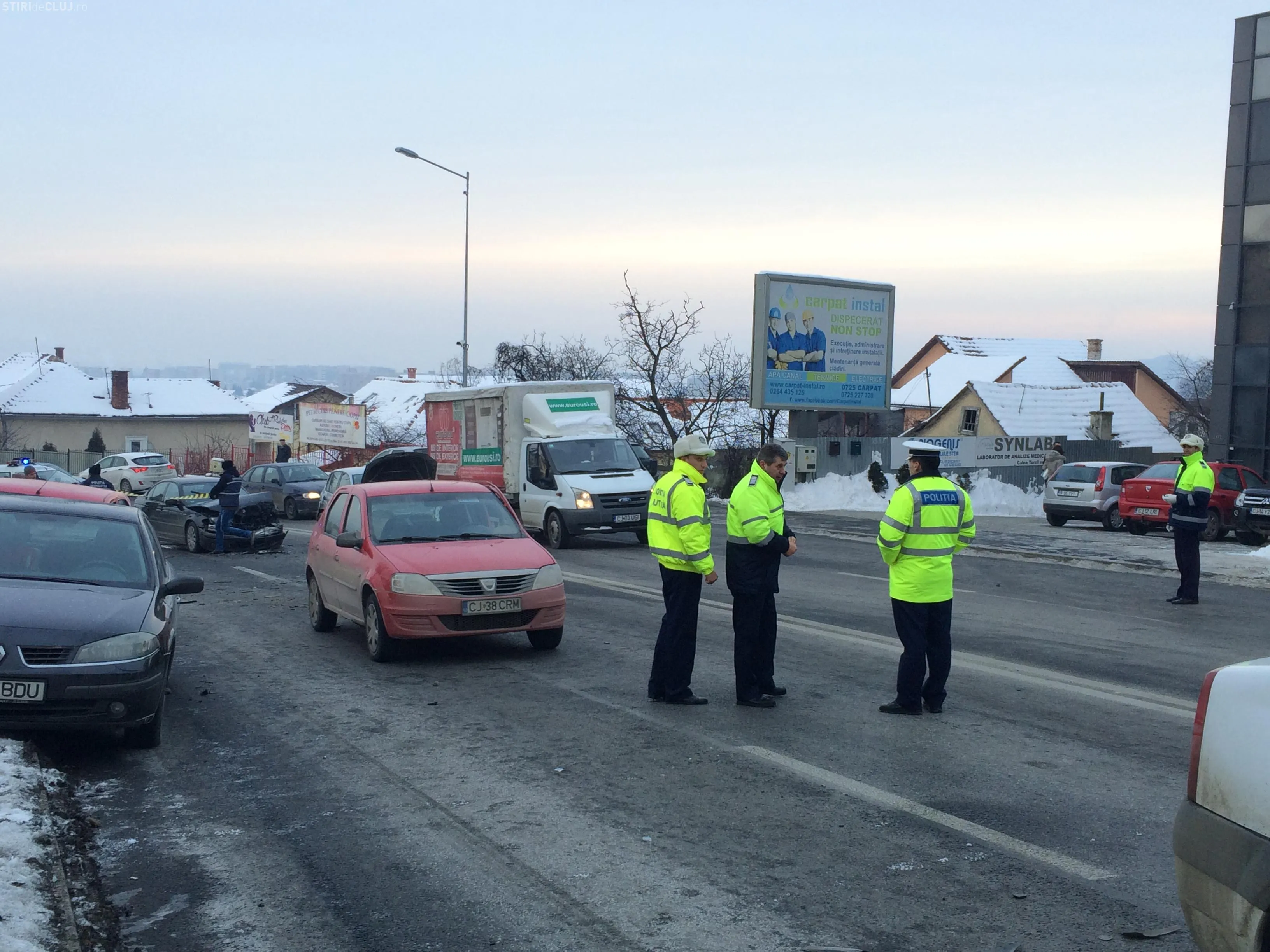 Accident în lanț pe Calea Turzii! Un șofer a derapat și a lovit cinci mașini FOTO
