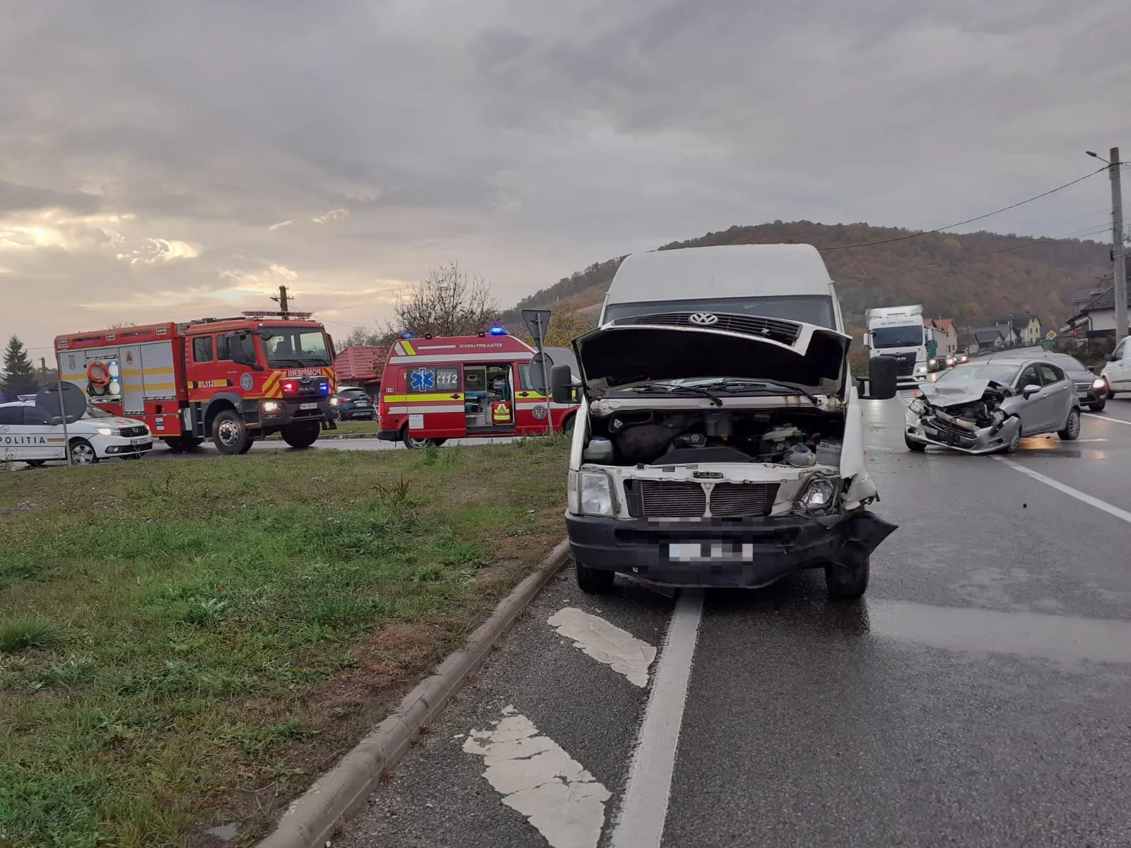 Accident în localitatea Bunești, Cluj! Un autoturism și o autoutilitară, făcute praf în urma impactului