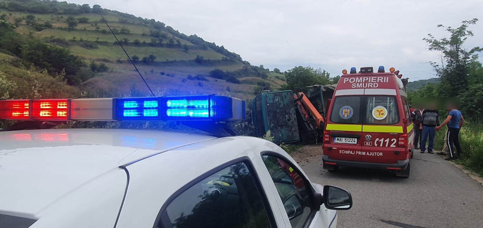 Accident în localitatea Sâmboieni, Cluj! Un șofer din Bistrița-Năsăud a ajuns cu autoutilitara într-un cap de pod și s-a răsturnat - FOTO