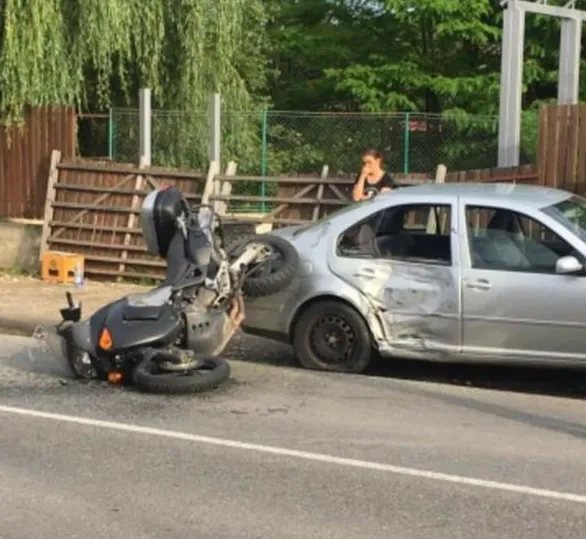 Accident în Luna de Sus! O șoferiță i-a tăiat calea unui motociclist - FOTO