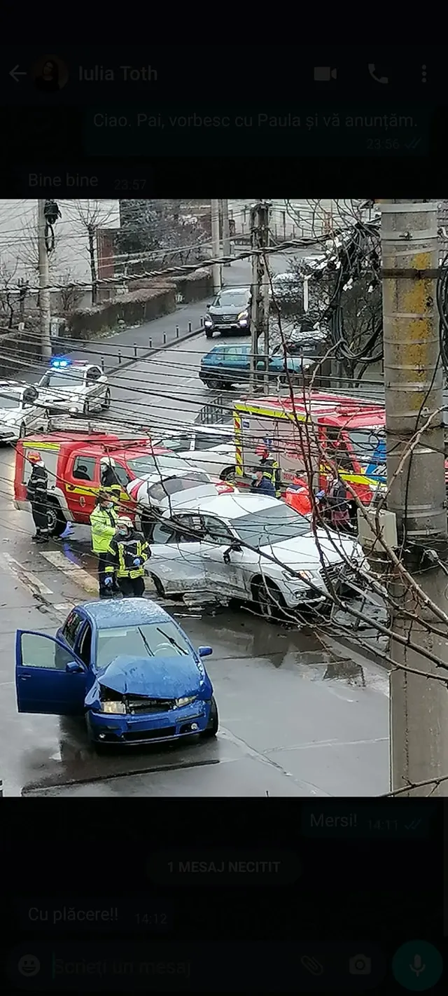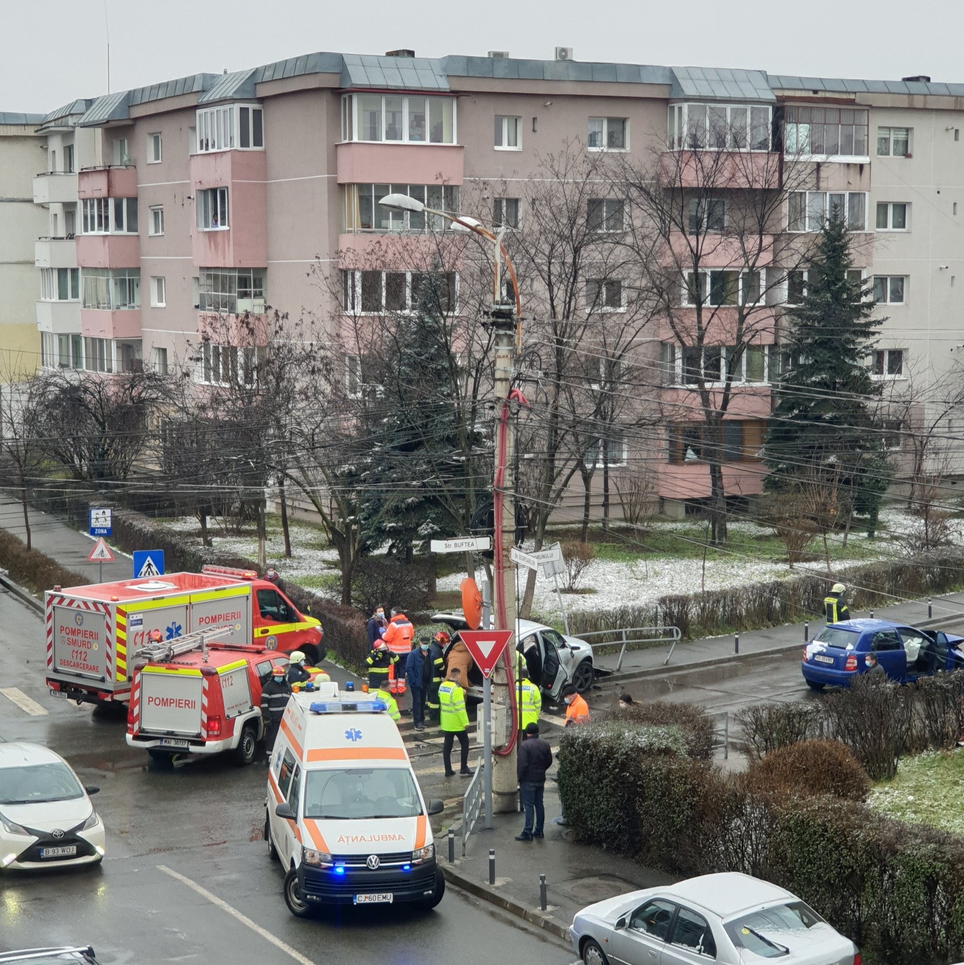 Un accident de circulație s-a produs duminică, 31 ianuarie, în jurul orei 15.00, la intersecția străzilor Gorunului și Scortarilor.