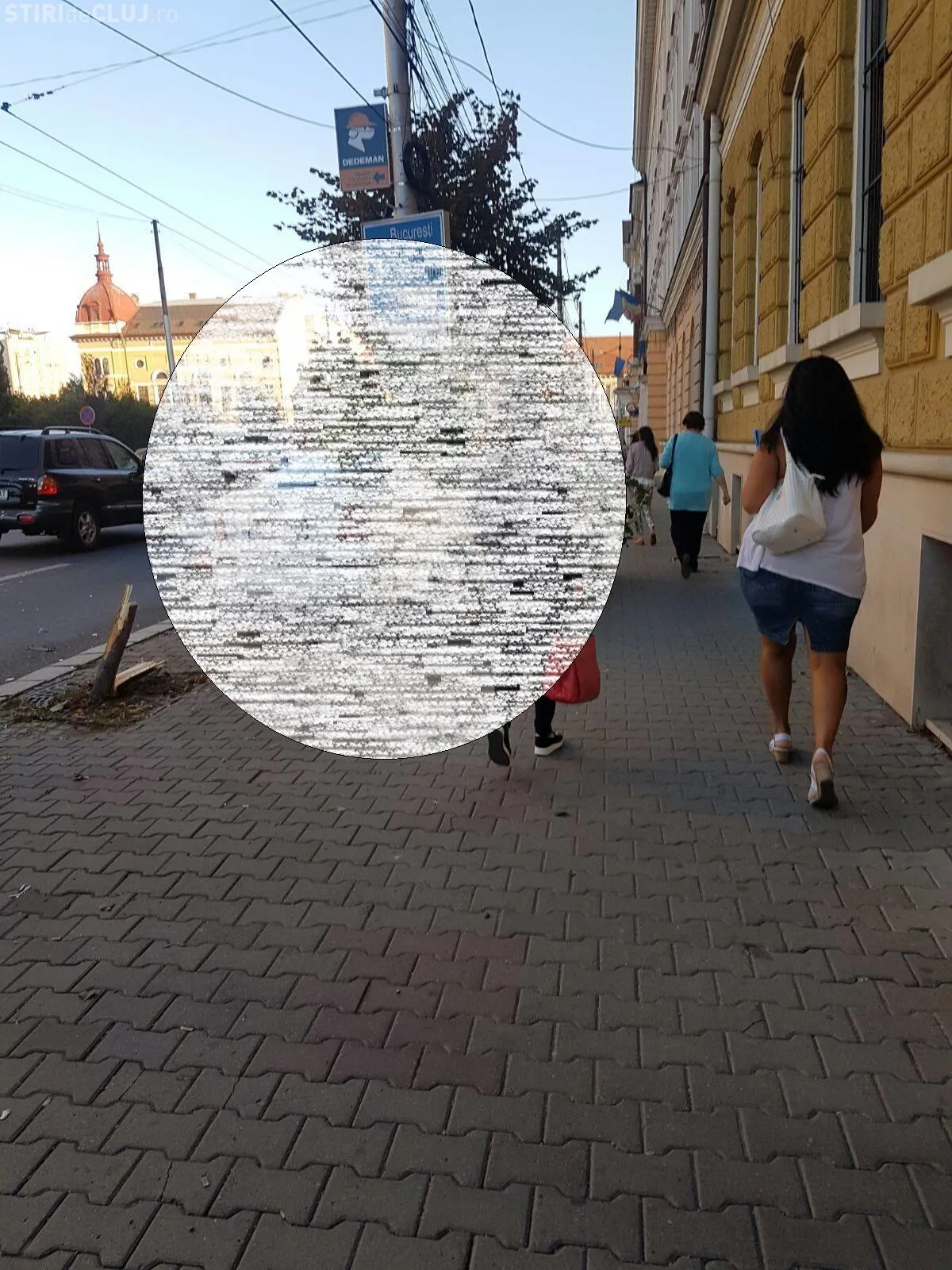 Un șofer a ”eșuat” pe trotuar în Piața Avram Iancu, din Cluj-Napoca, și a doborât la pământ un copac.
