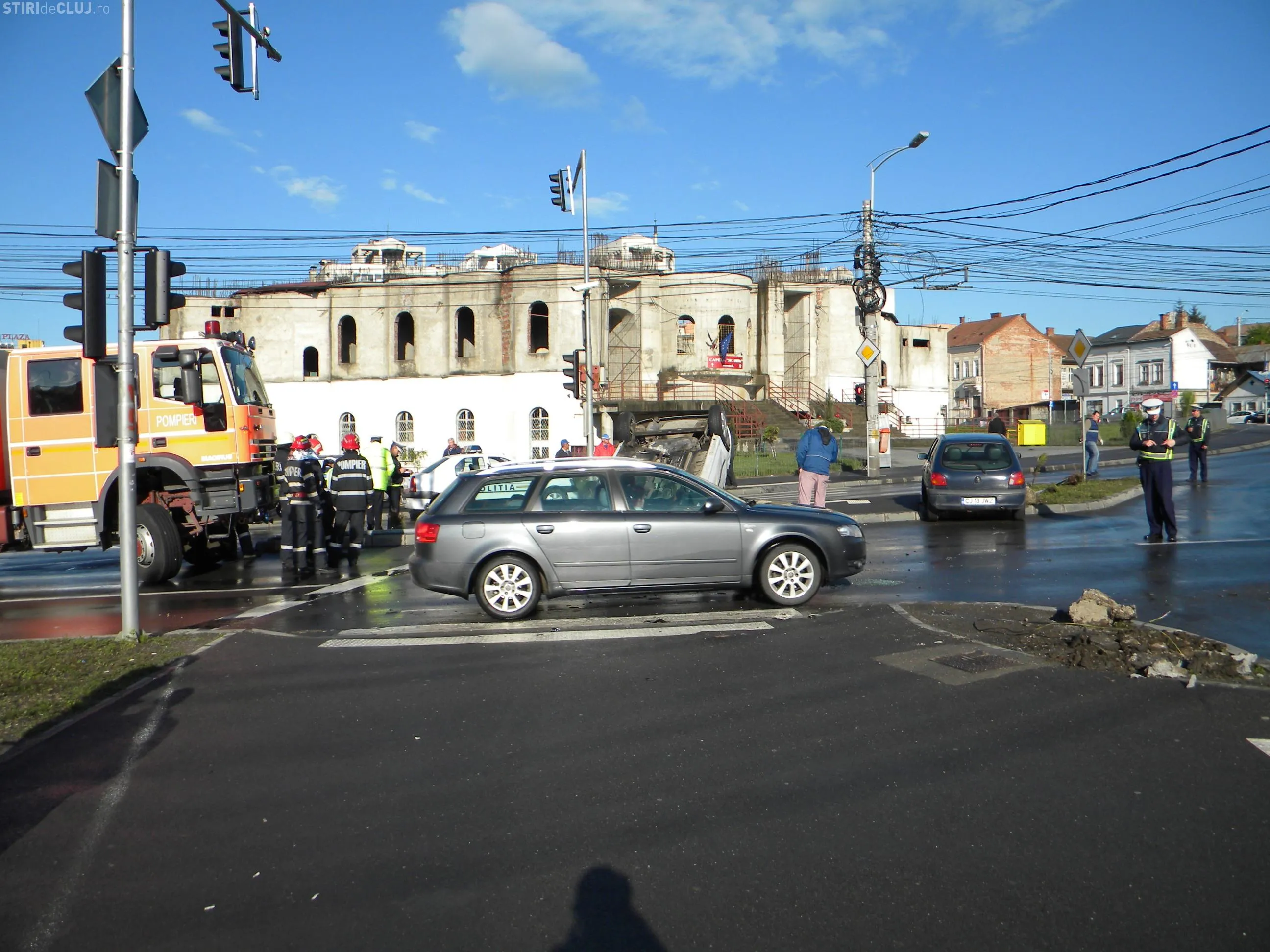 Accident in Piata Baba Novac! O masina s-a rasturnat si un semafor a fost demolat VIDEO si FOTO