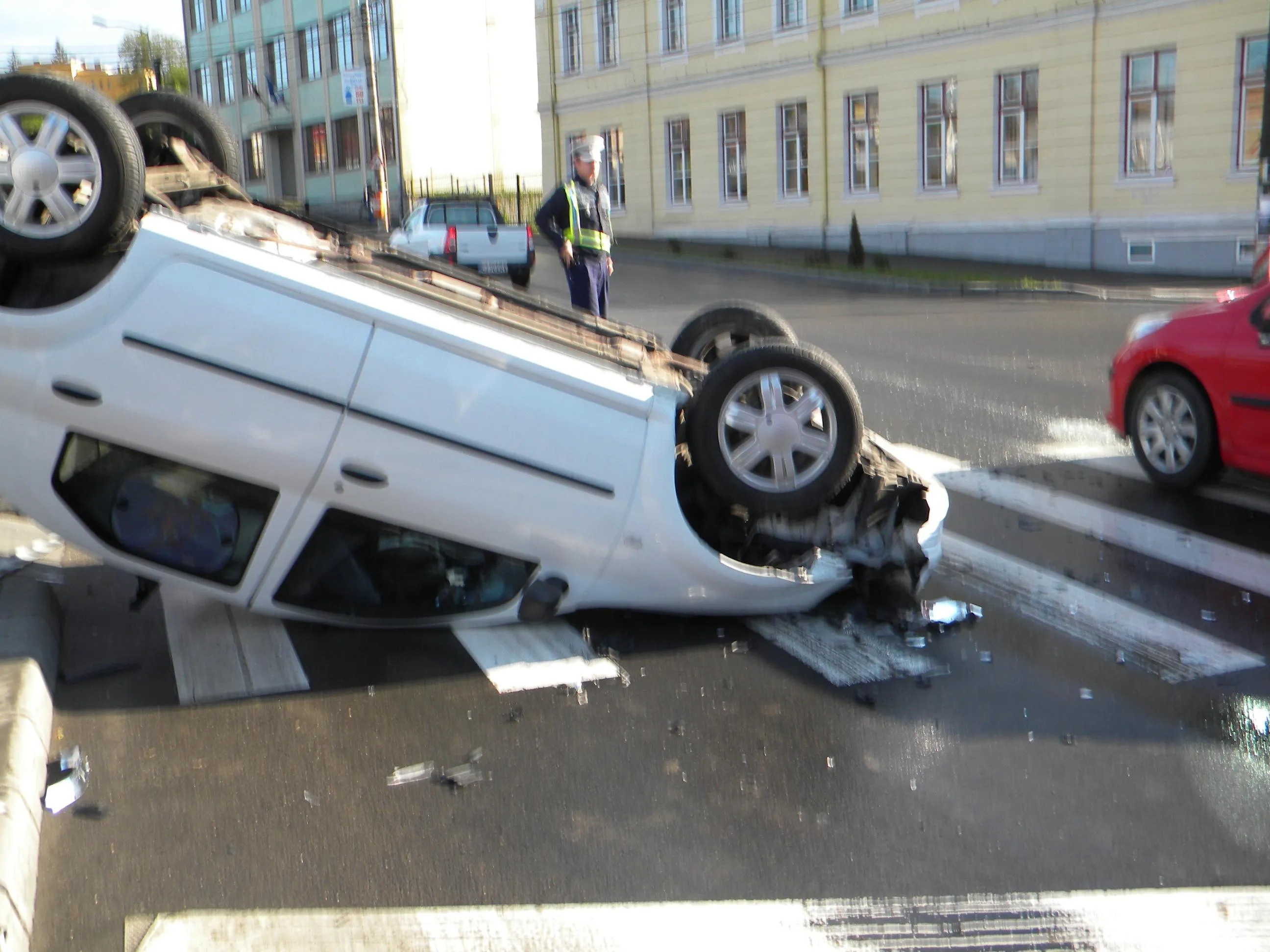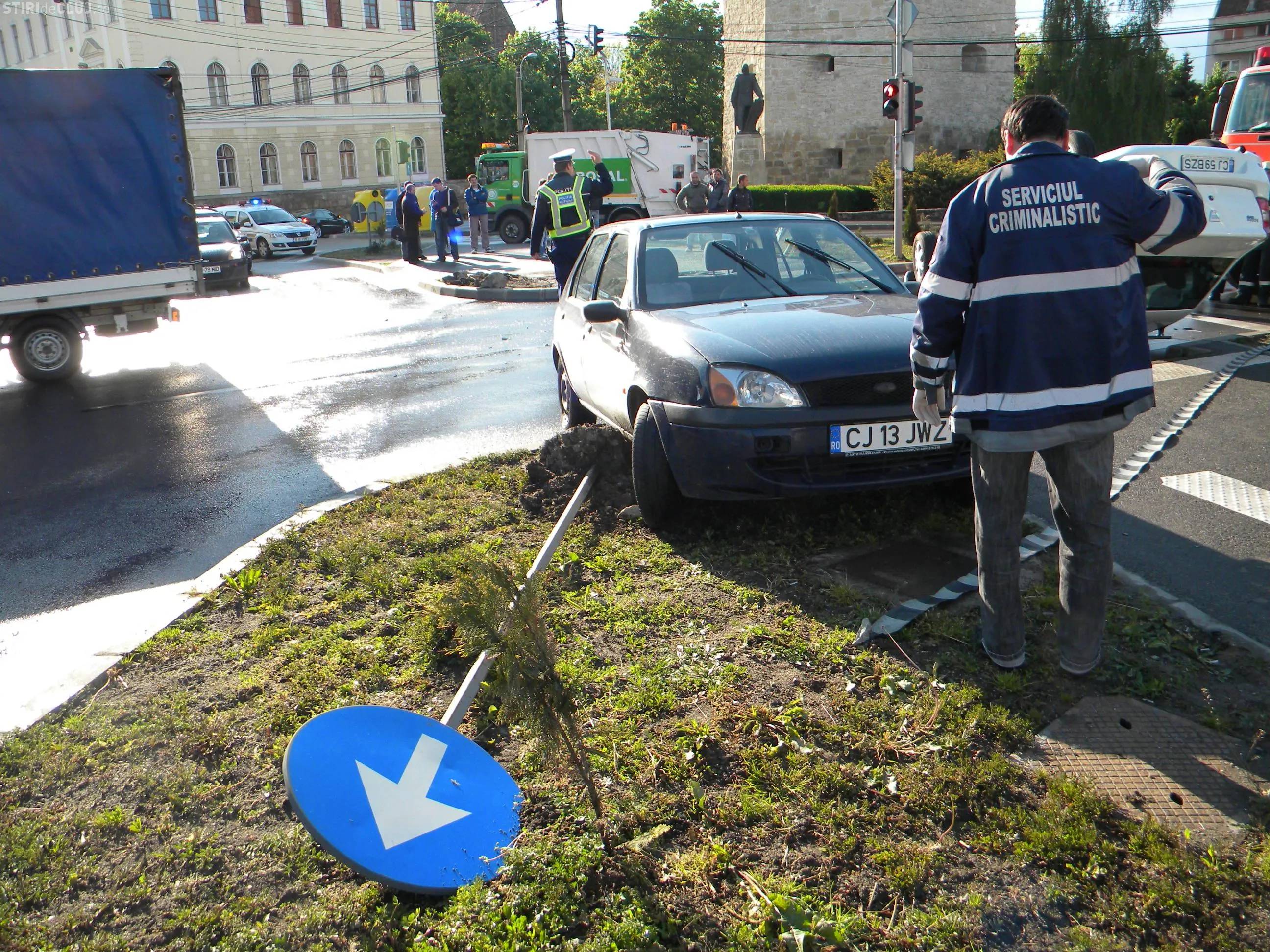 Accidentul a fost provocat de soferul unui autoturism marca Ford, care circula pe strada Avram Iancu. La intrare in Piata Baba Novac, soferul sustine ca a intrat intr-o balta si "masina a fost aruncata pe cealalta banda de mers. De acolo venea Loganul alb care s-a rasturnat. Probabil soferul a tras si el de volan stanga si a lovit bordura, iar de acolo a lovit semaforul si s-a rasturnat. Stiu ca o femeie a fost ranita, era taiata", a spus soferul autoturismului Ford.