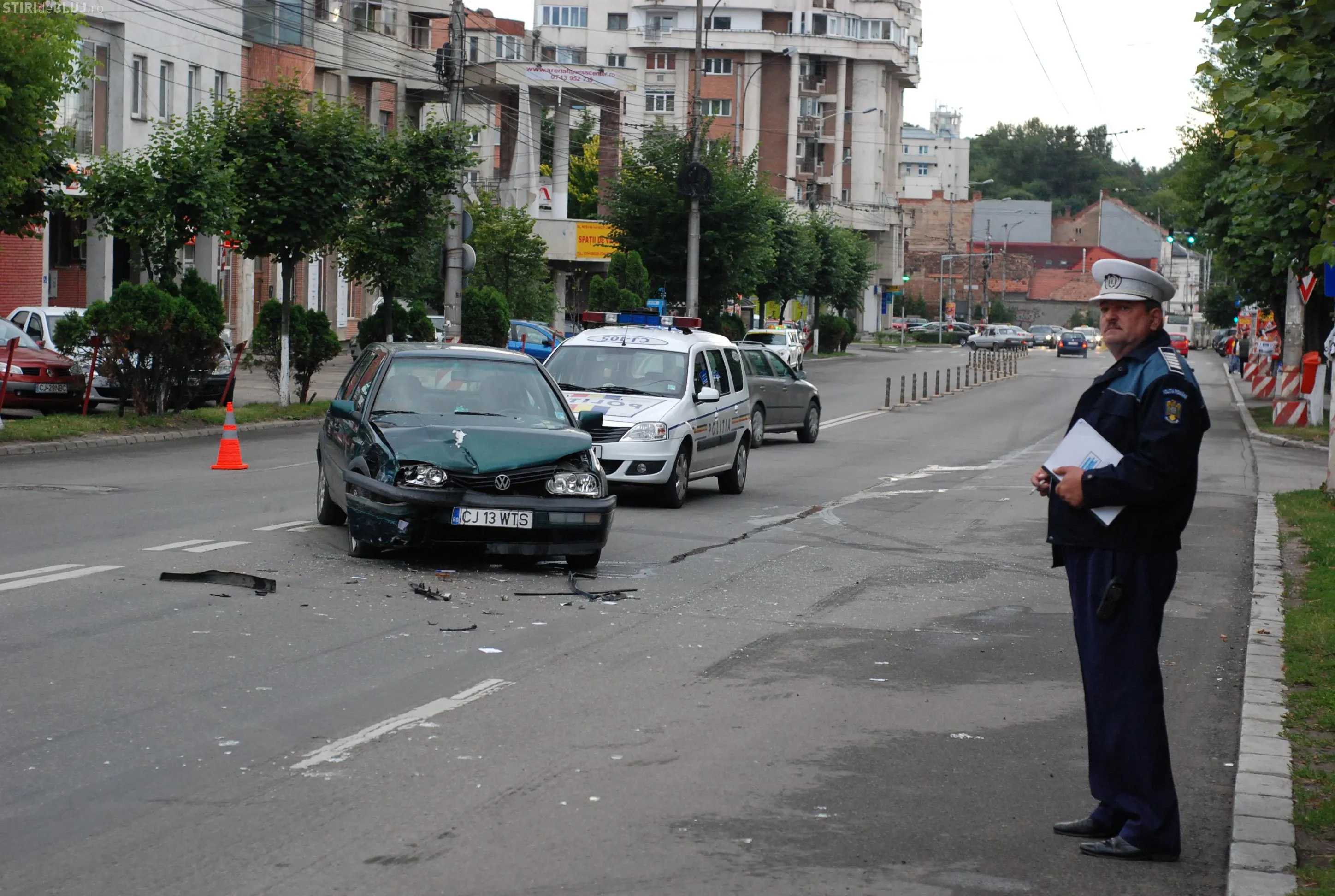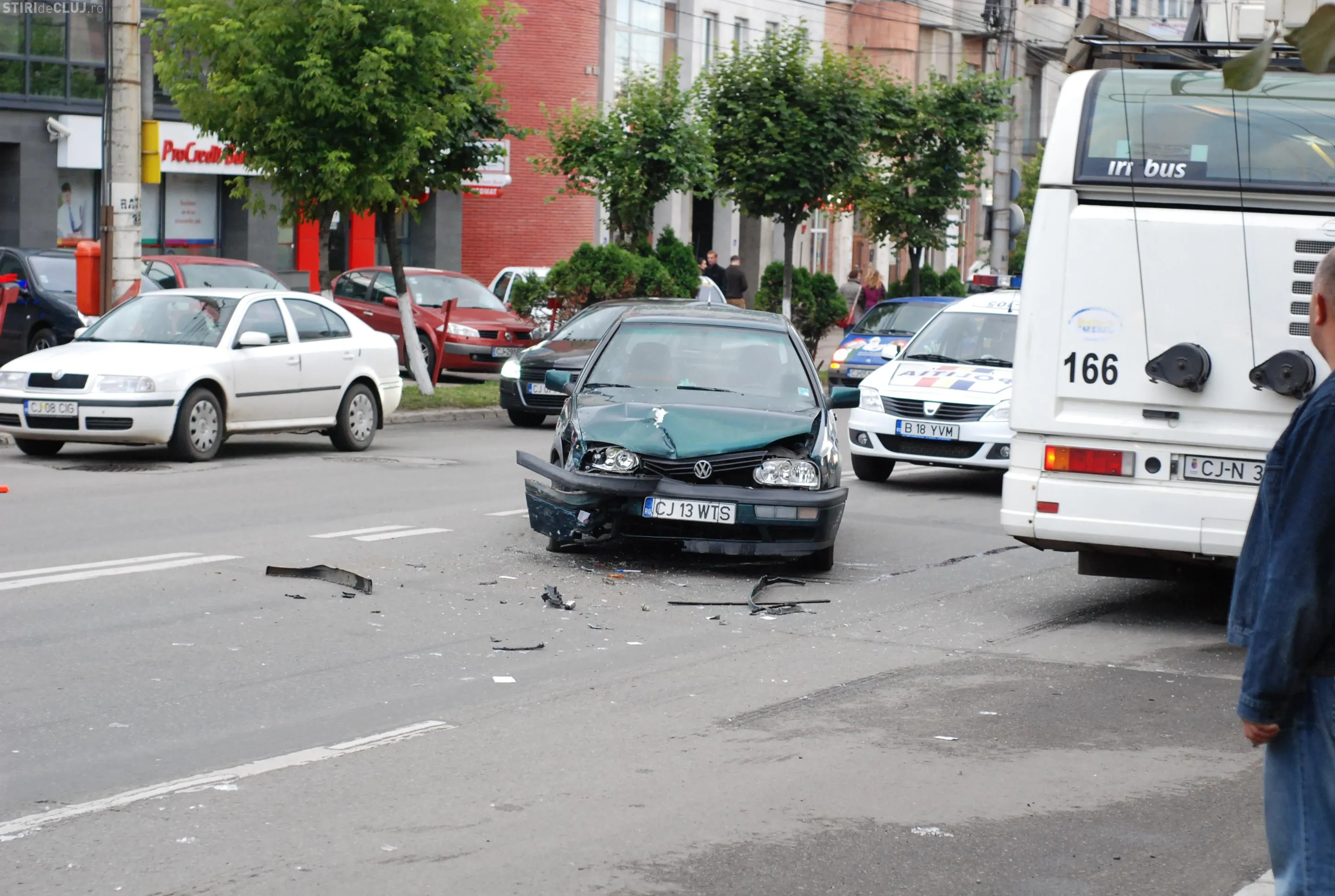 Accident in Piata Cipariu! Un taximetru a fost proiectat pe trotuar, dupa ce a taiat calea unei masini FOTO