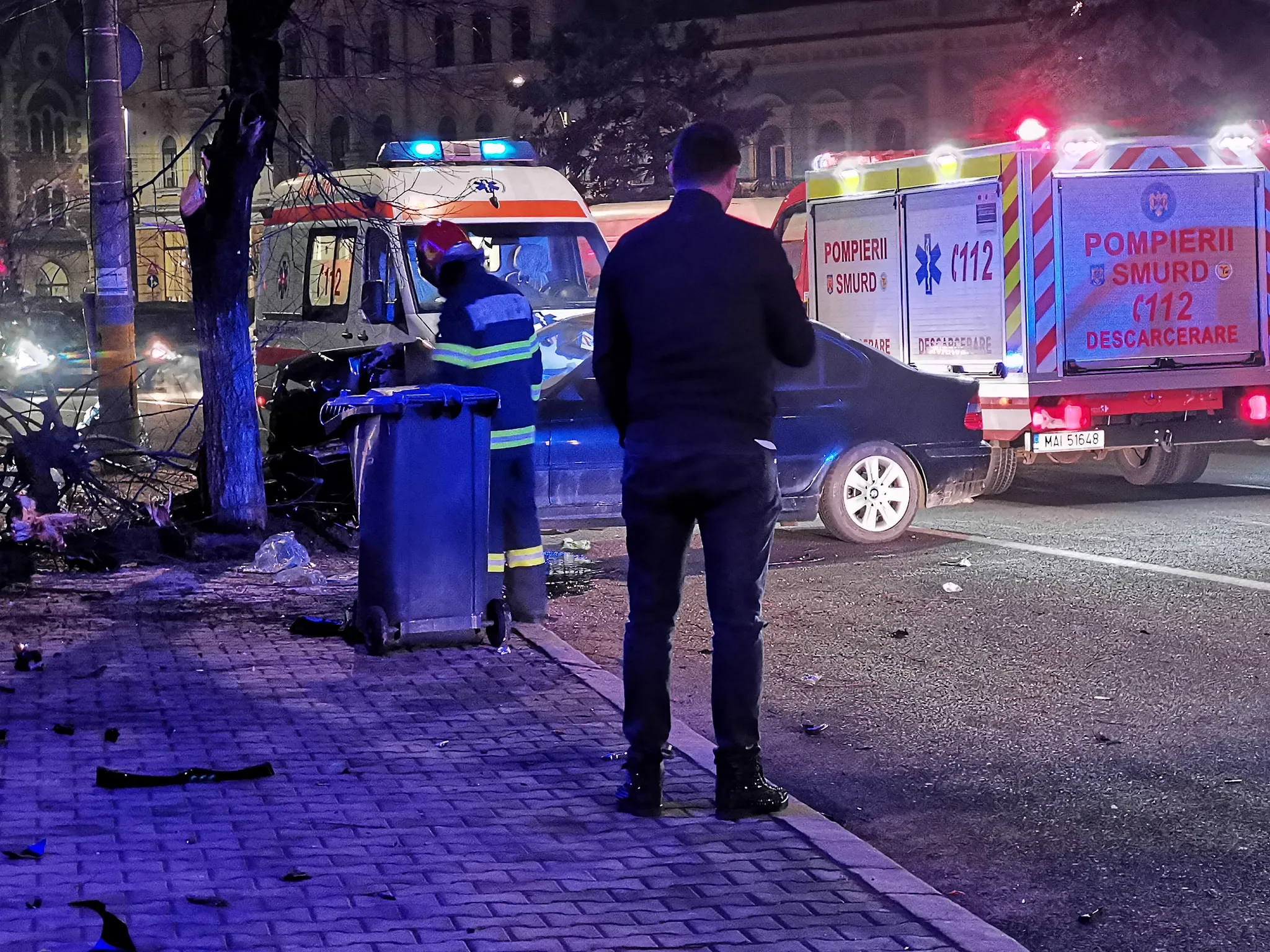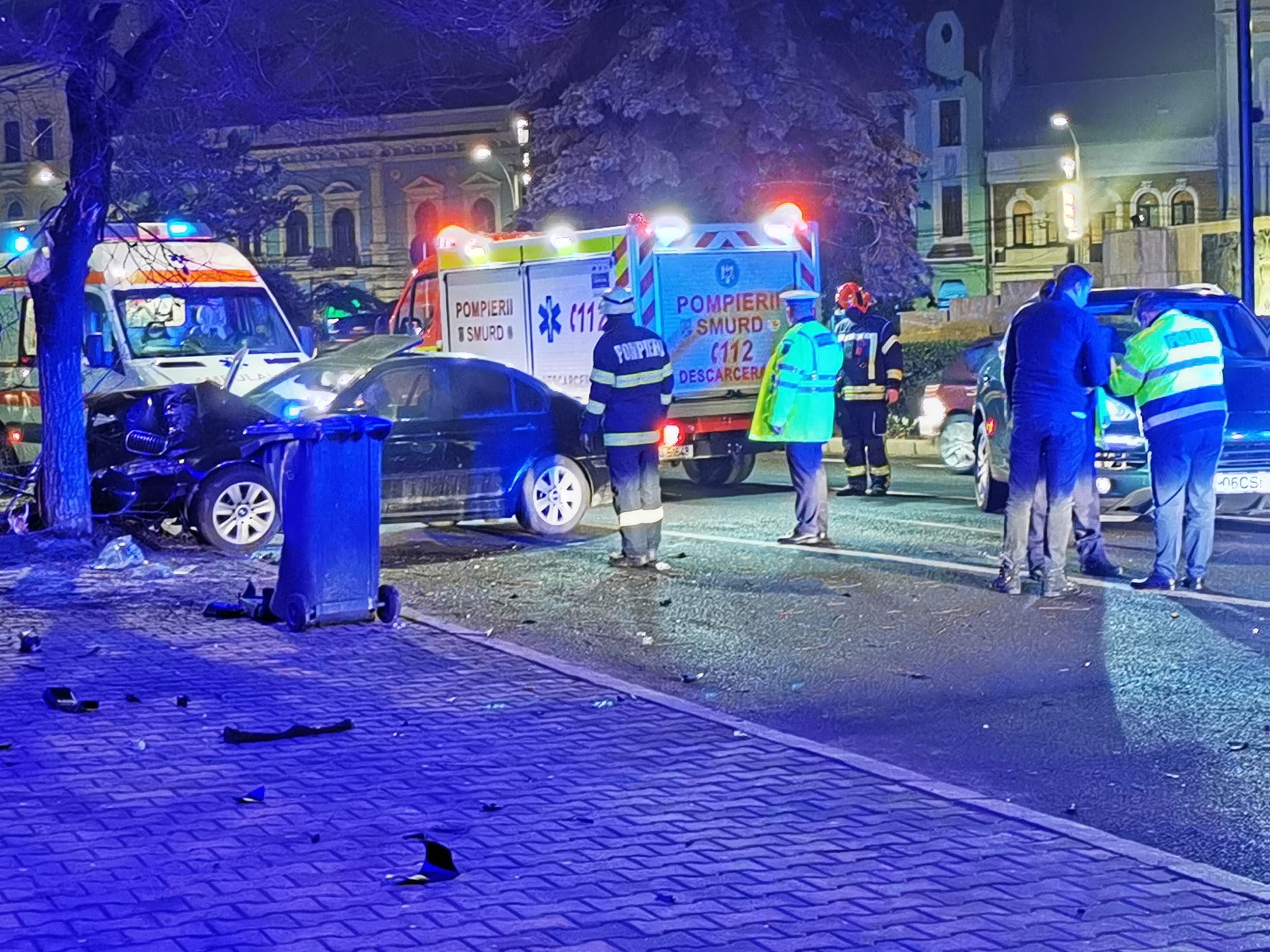 Accident în Piața Mihai Viteazu. A derapat și a intrat într-un copac. E al treilea accident miercuri seara - FOTO