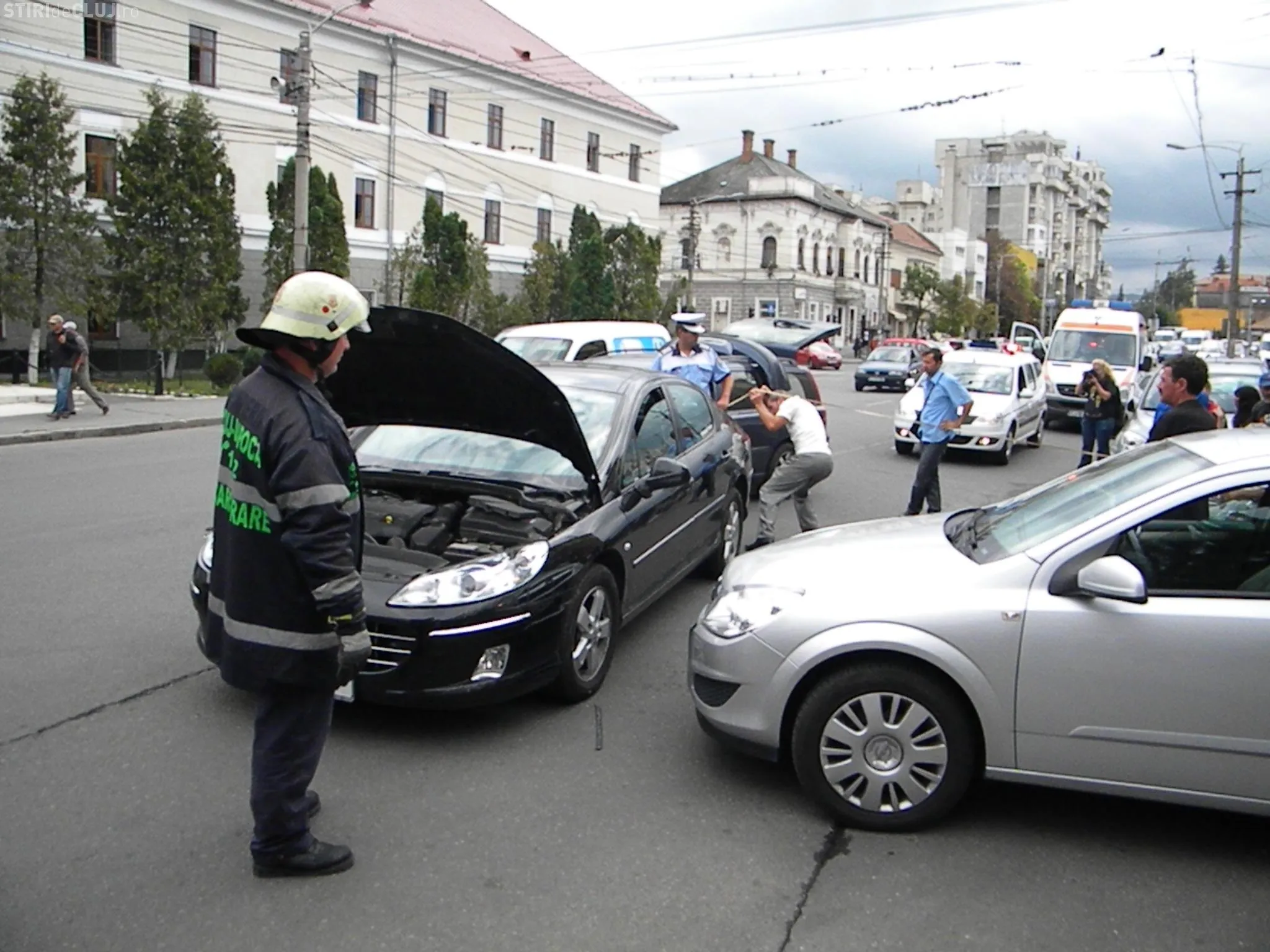 Soferul unui Opel care iesea de pe strada din fata Casei Invatatorului spre cladirea Armatei a 4-a a incercat sa faca stanga spre Tribunal pentru a parca. In acel moment, dinspre Piata Cipariu venea un Peugeot.