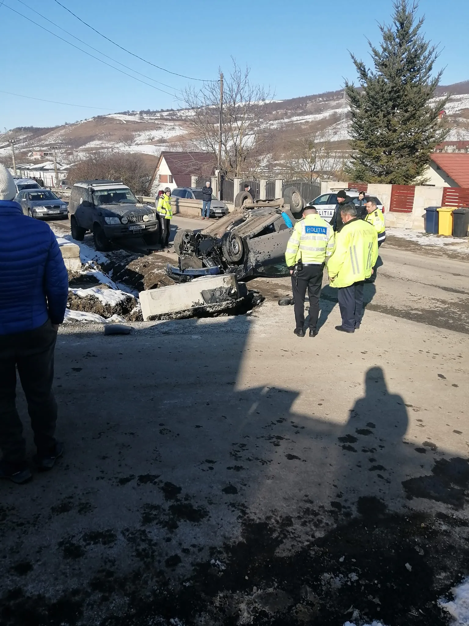 Una dintre mașini s-a răsturnat. Vecinii din zonă spun că pe drum se circulă extrem de tare.