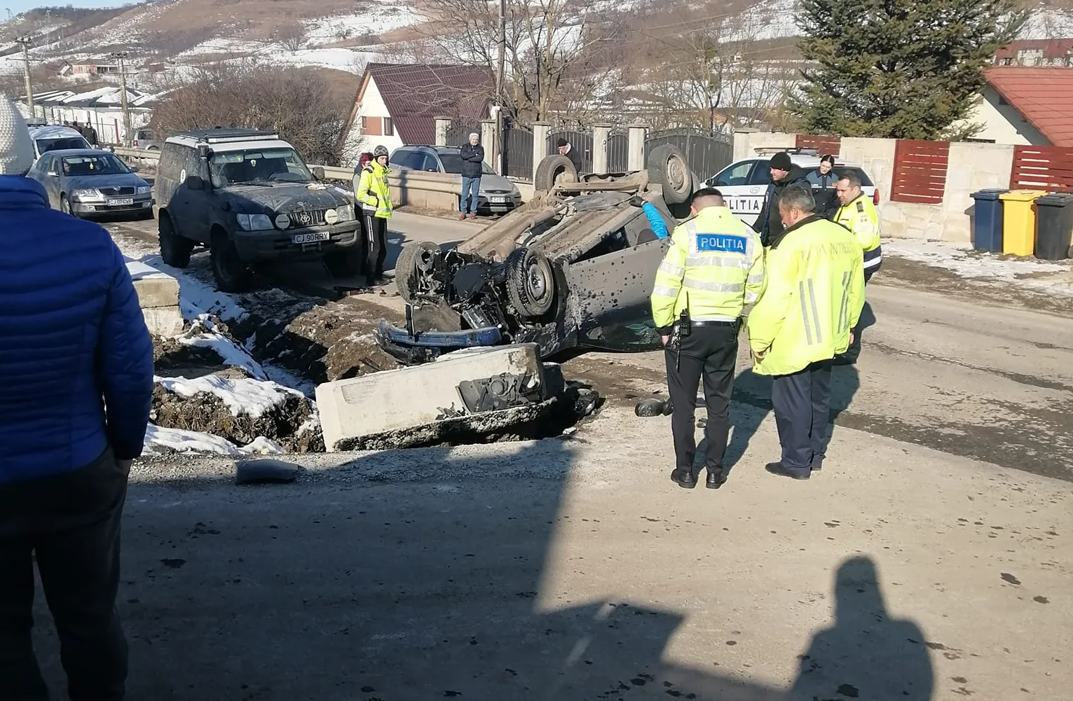 Accident în Popești, comuna Baciu. Un vitezist s-a răsturnat - FOTO
