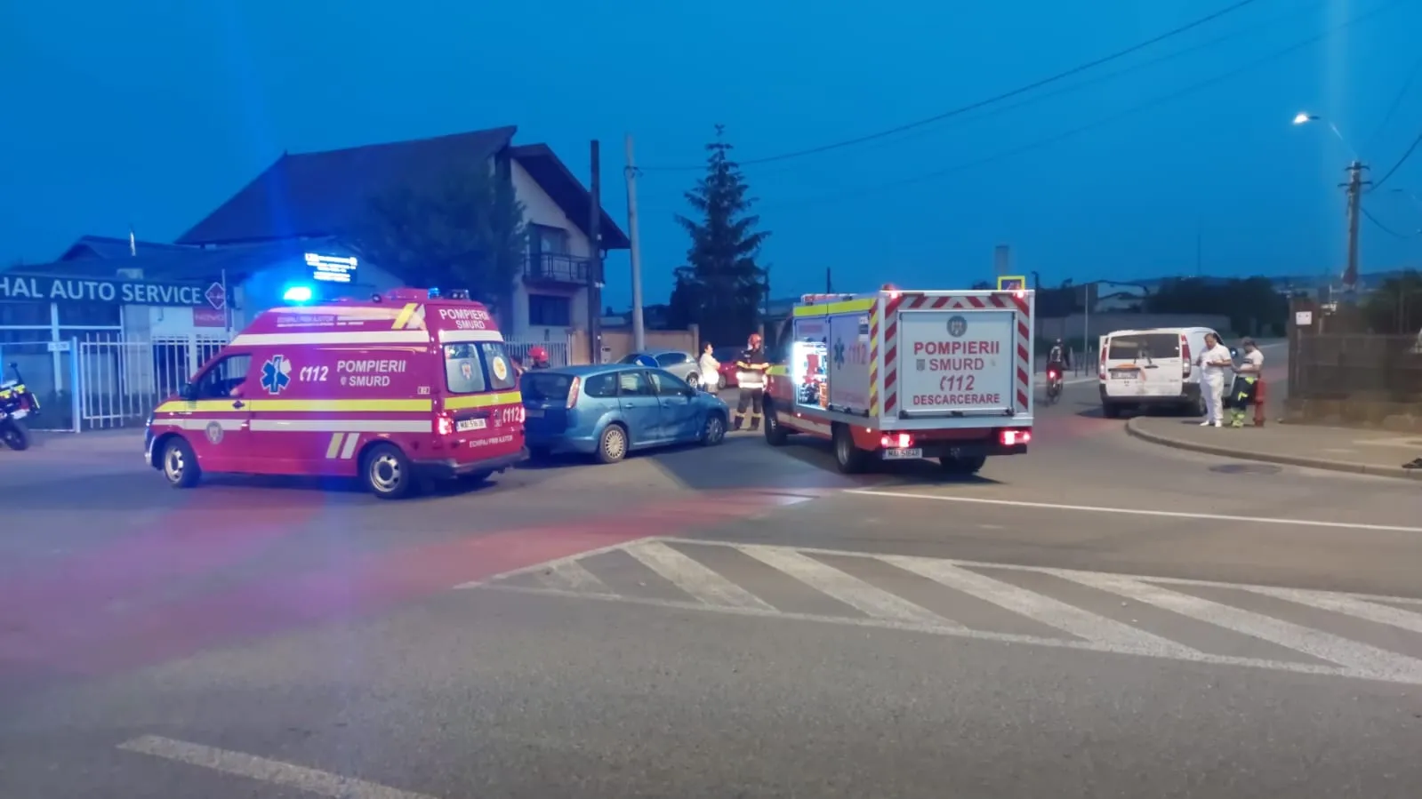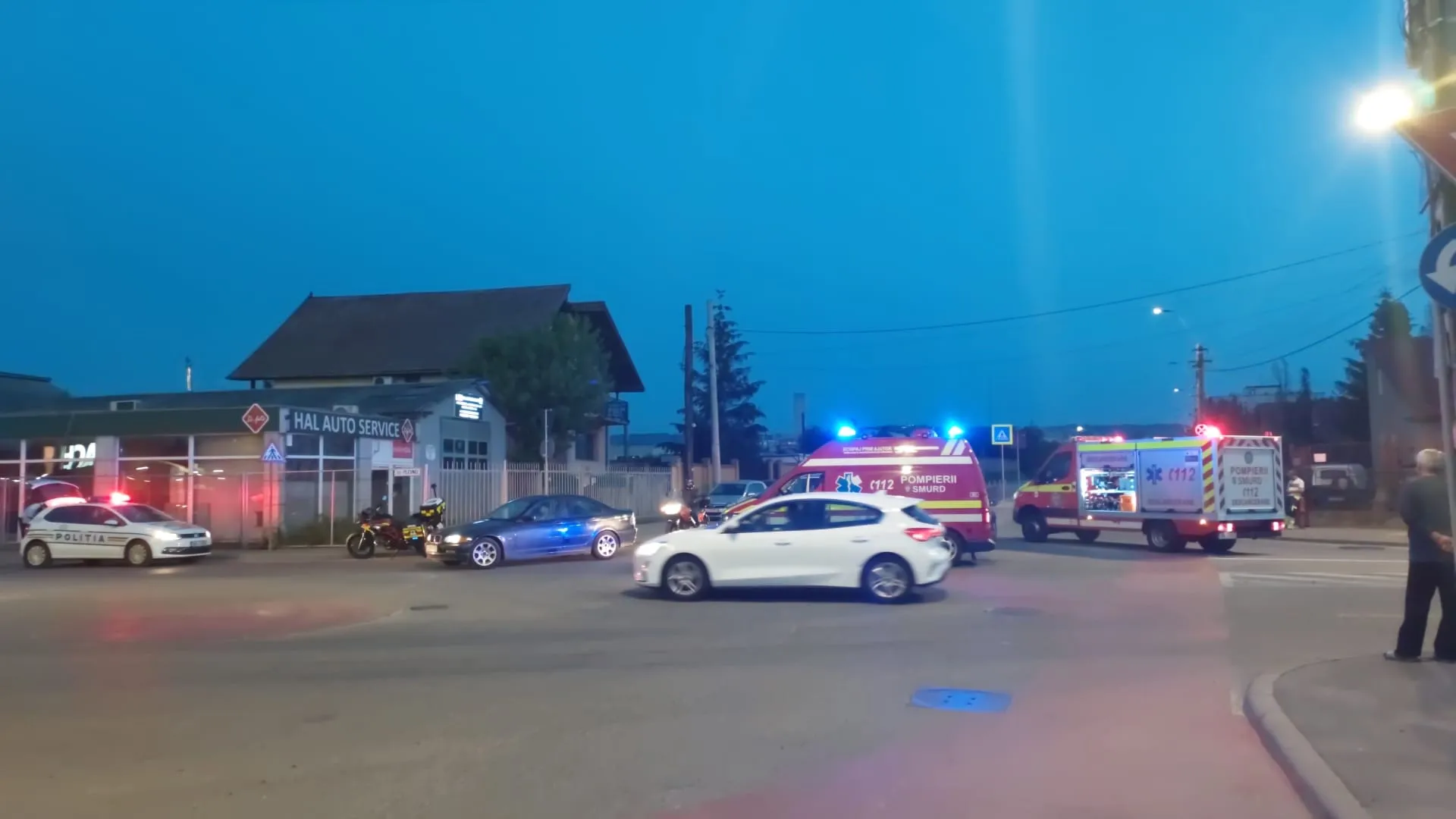 Un șofer a intrat în sensul giratoriu și nu a acordat prioritate, rezultând o coliziune. La fața locului s-au deplasat două mașini de la SMURD.