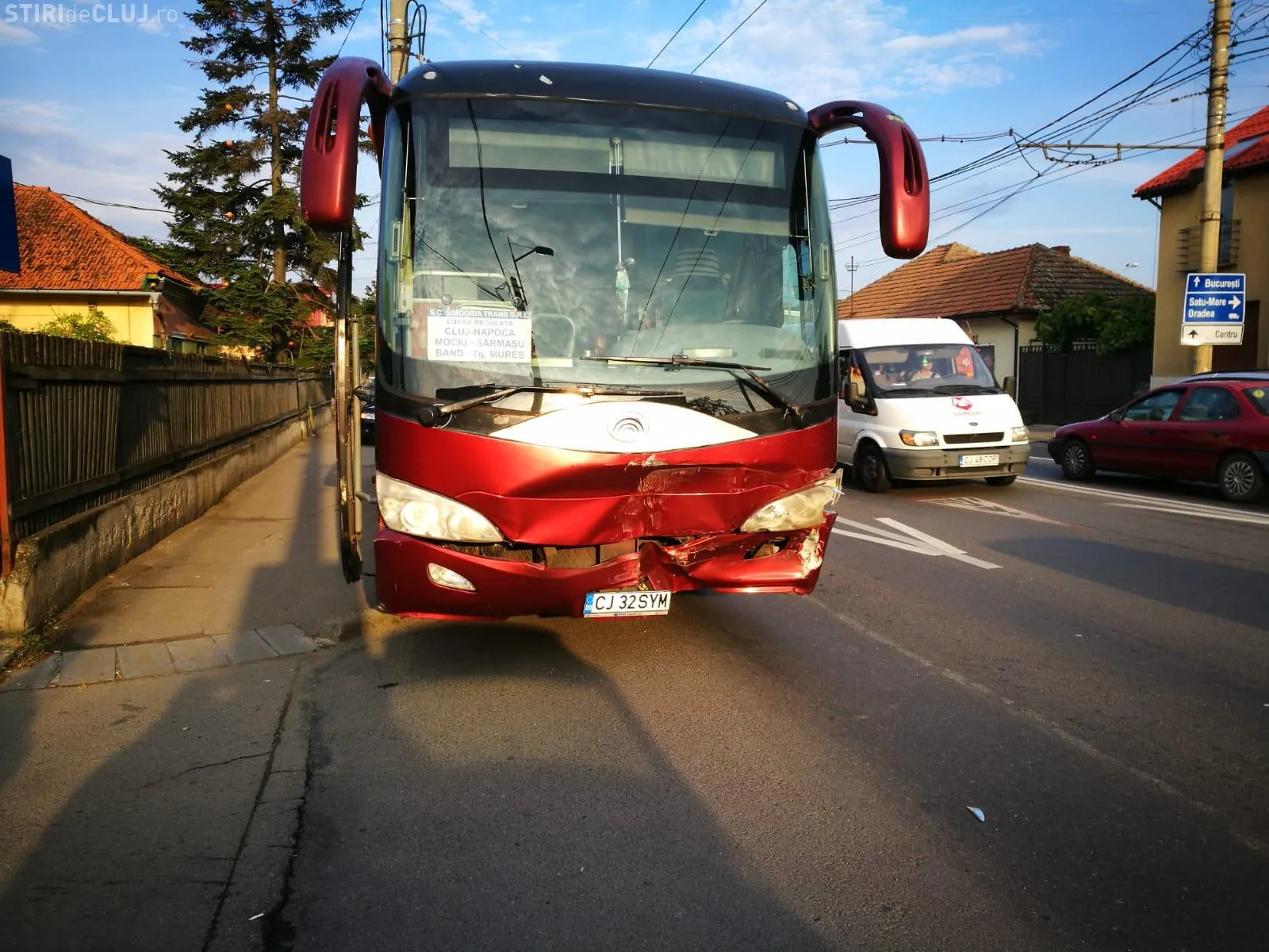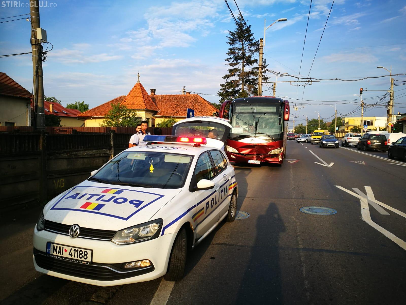 Accident în Someșeni.Șoferul unui autocar in care erau 26 de oameni era băut la volan și a intrat intr-o mașină oprită la semafor-FOTO