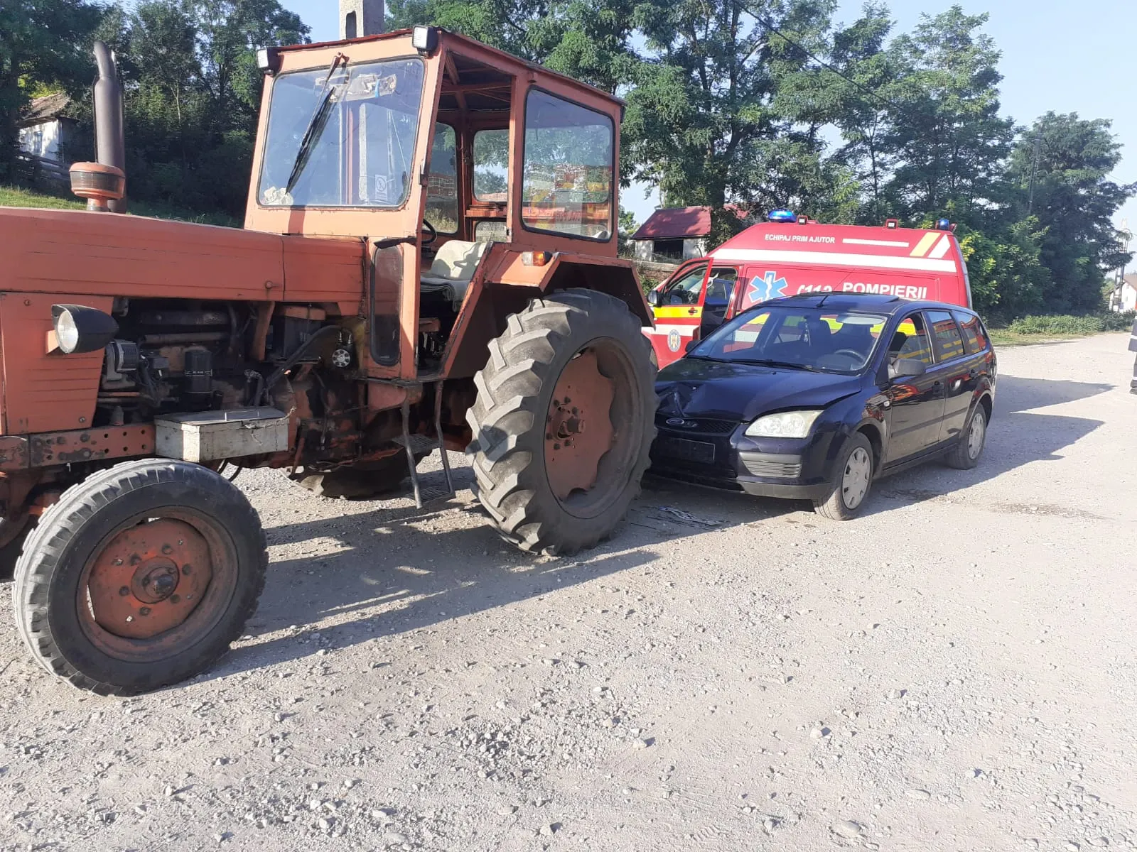 Accident în Suatu, Cluj. O femeie a intrat cu mașina într-un tractor parcat pe drum- FOTO
