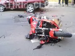 Accidentul s-a soldat cu rănirea gravă a conducătorului motociclului şi avarierea a două vehicule.
