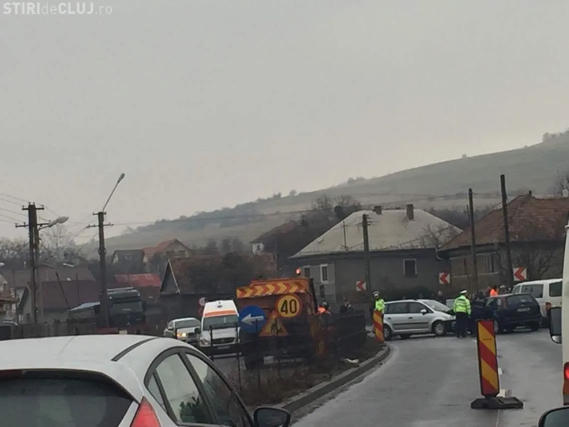 Accident în Vâlcele! Drumul Cluj - Turda e BLOCAT. Ambulanța nu poate trece de GARD - FOTO