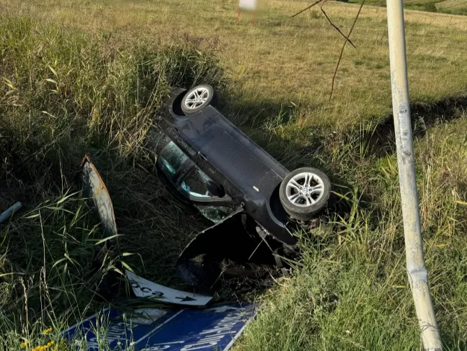 La sosirea echipajelor de salvatori, autoturismul implicat în accident a fost găsit răsturnat în afara părții carosabile. Din fericire, nu au existat persoane încarcerate.