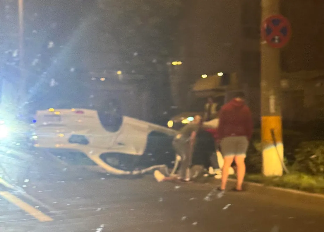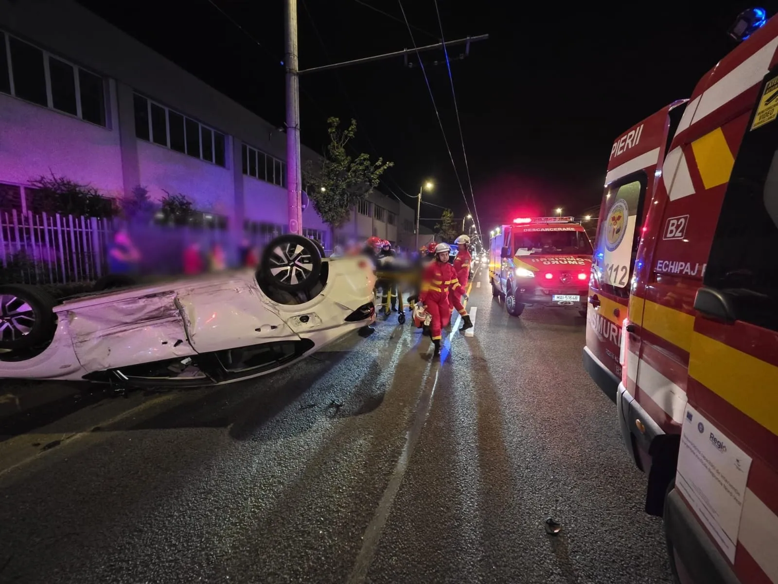 Accident în zona Aeroportului Cluj, pe Traian Vuia, în seara asta: O mașină s-a răsturnat în mijlocul drumului. Un tânăr a fost transportat la spital FOTO
