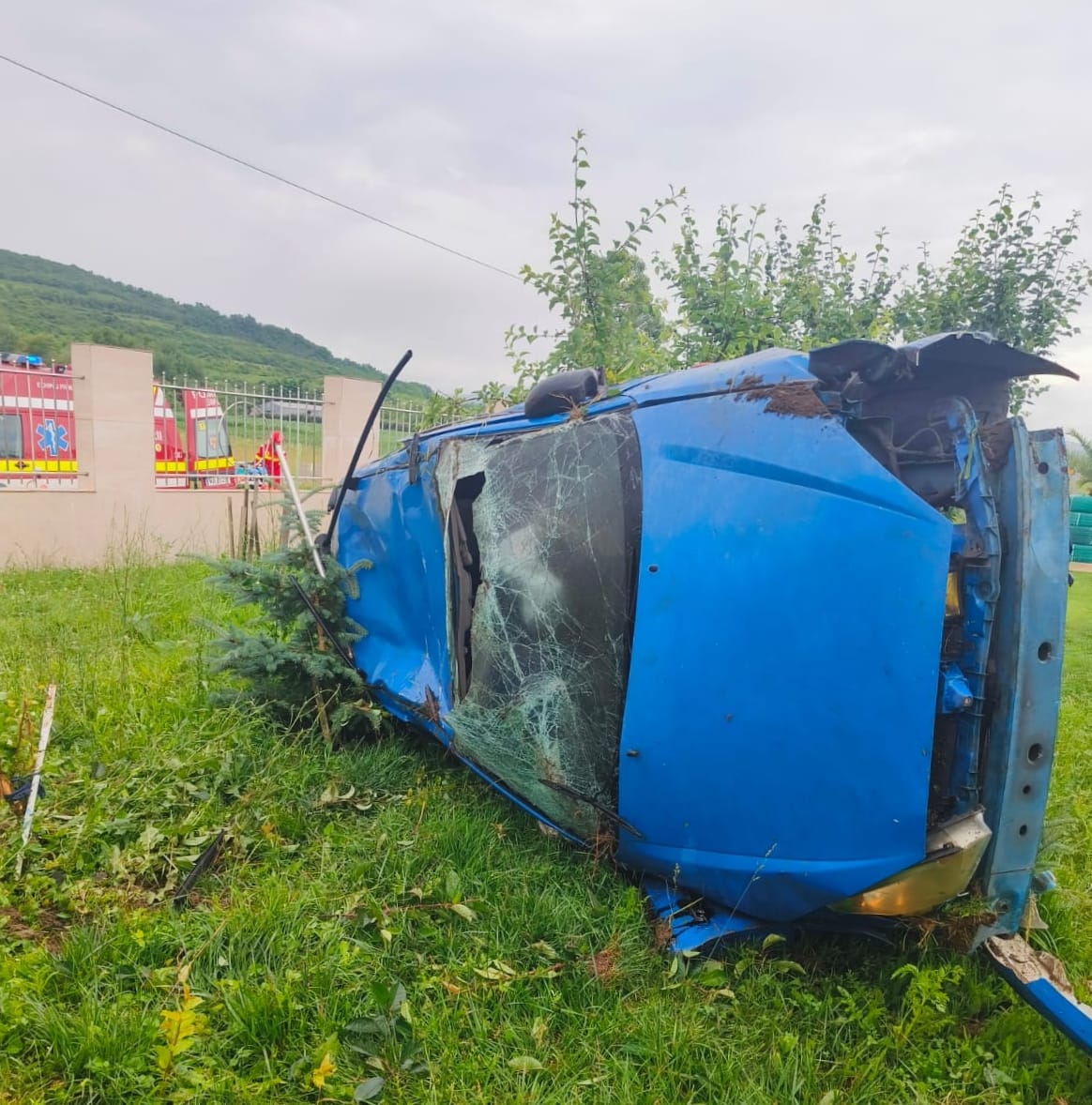 Accident într-o localitate clujeană: Un autoturism s-a răsturnat și un bărbat a fost grav rănit. A fost chemat elicopterul- FOTO