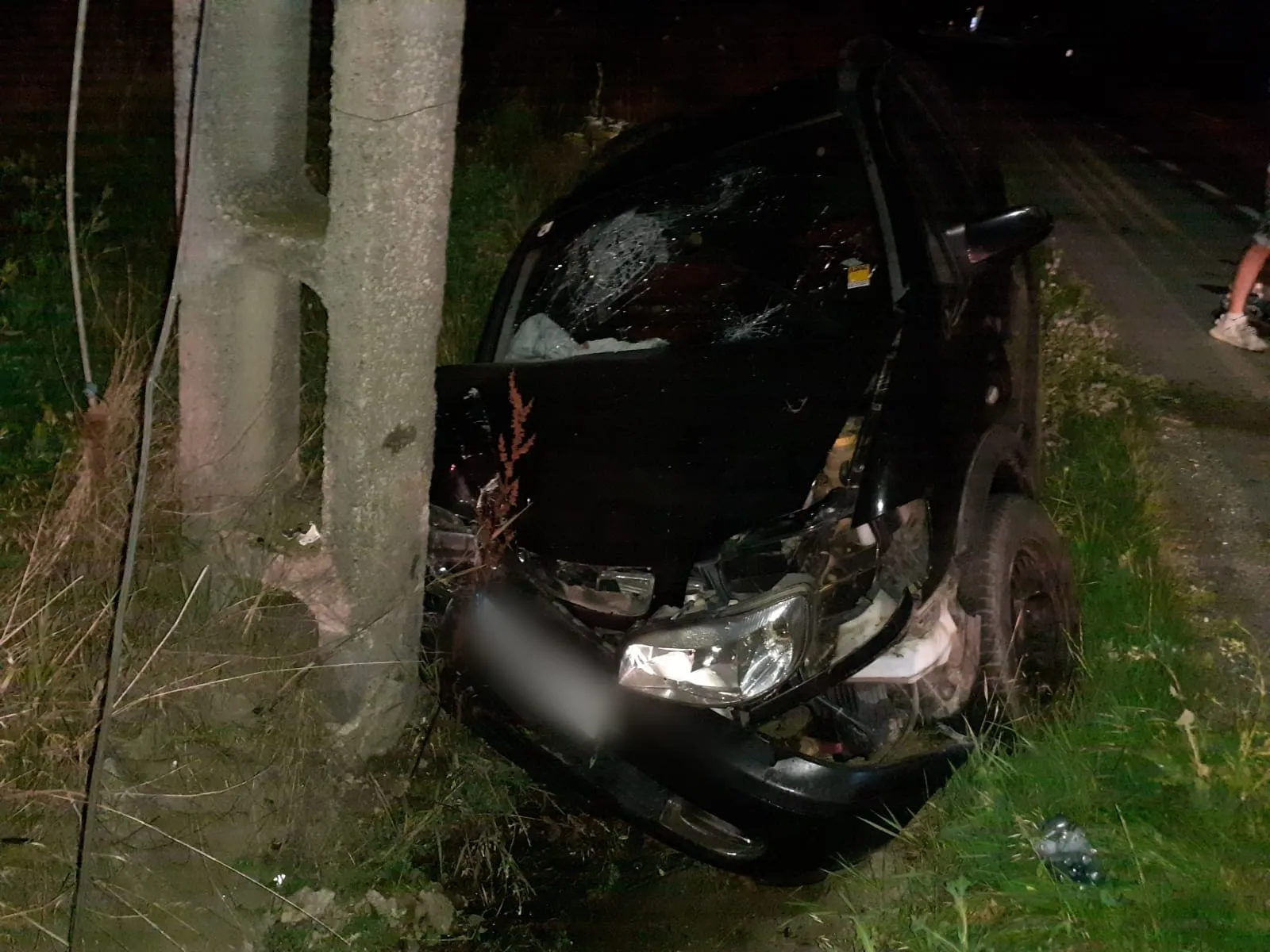 Accident într-o localitate din Cluj: Un șofer a intrat într-un stâlp de pe marginea drumului/A fost transportat de urgență la spital- FOTO