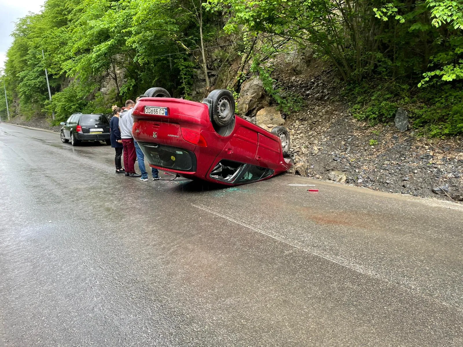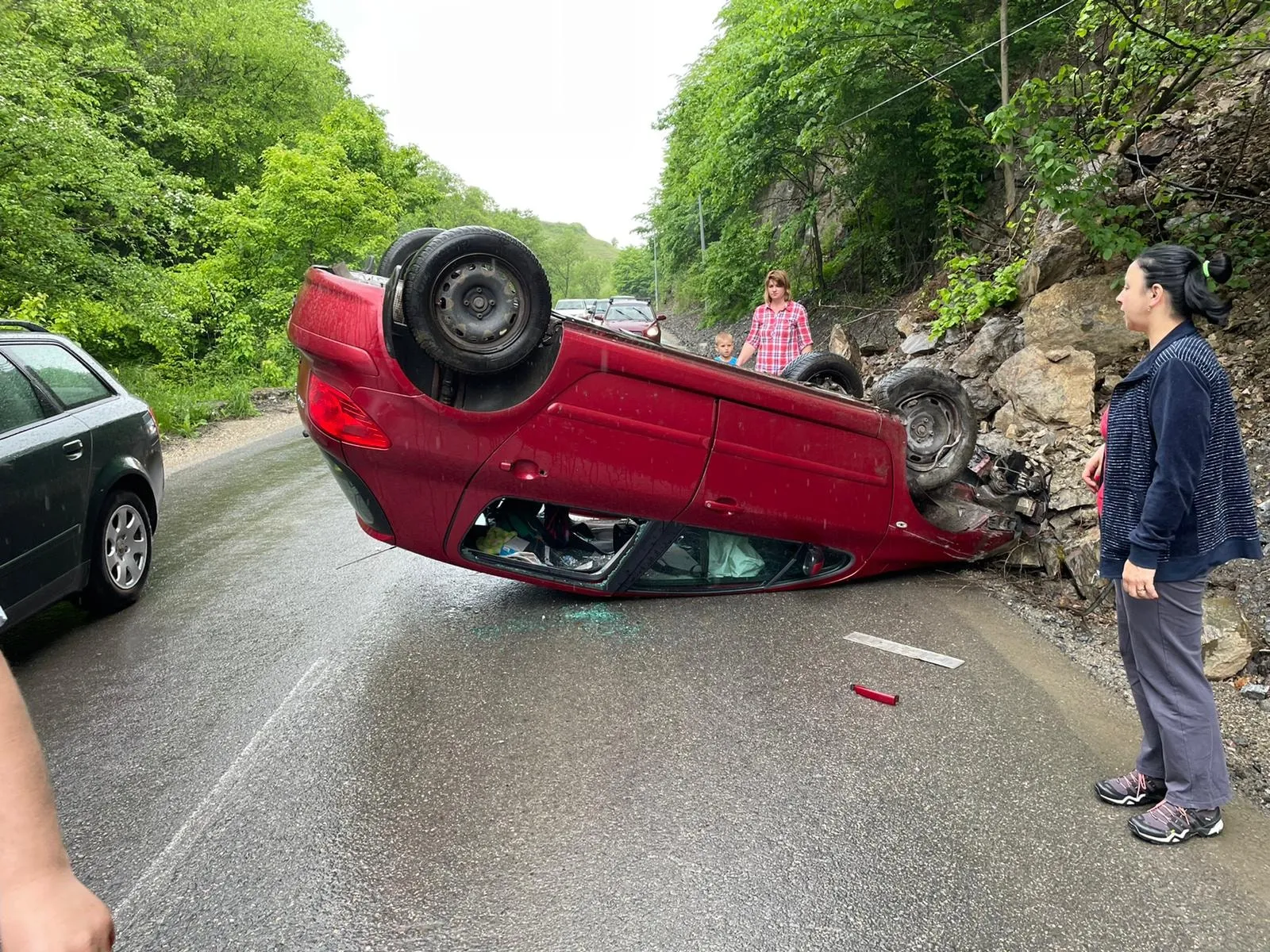 Accident între Băișoara și Liteni. O mașină s-a răsturnat - FOTO
