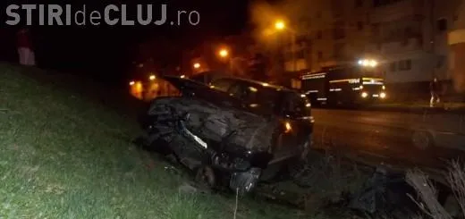 Accident între două automobile de lux la Dej. Un șofer a intrat cu mașina în dig FOTO