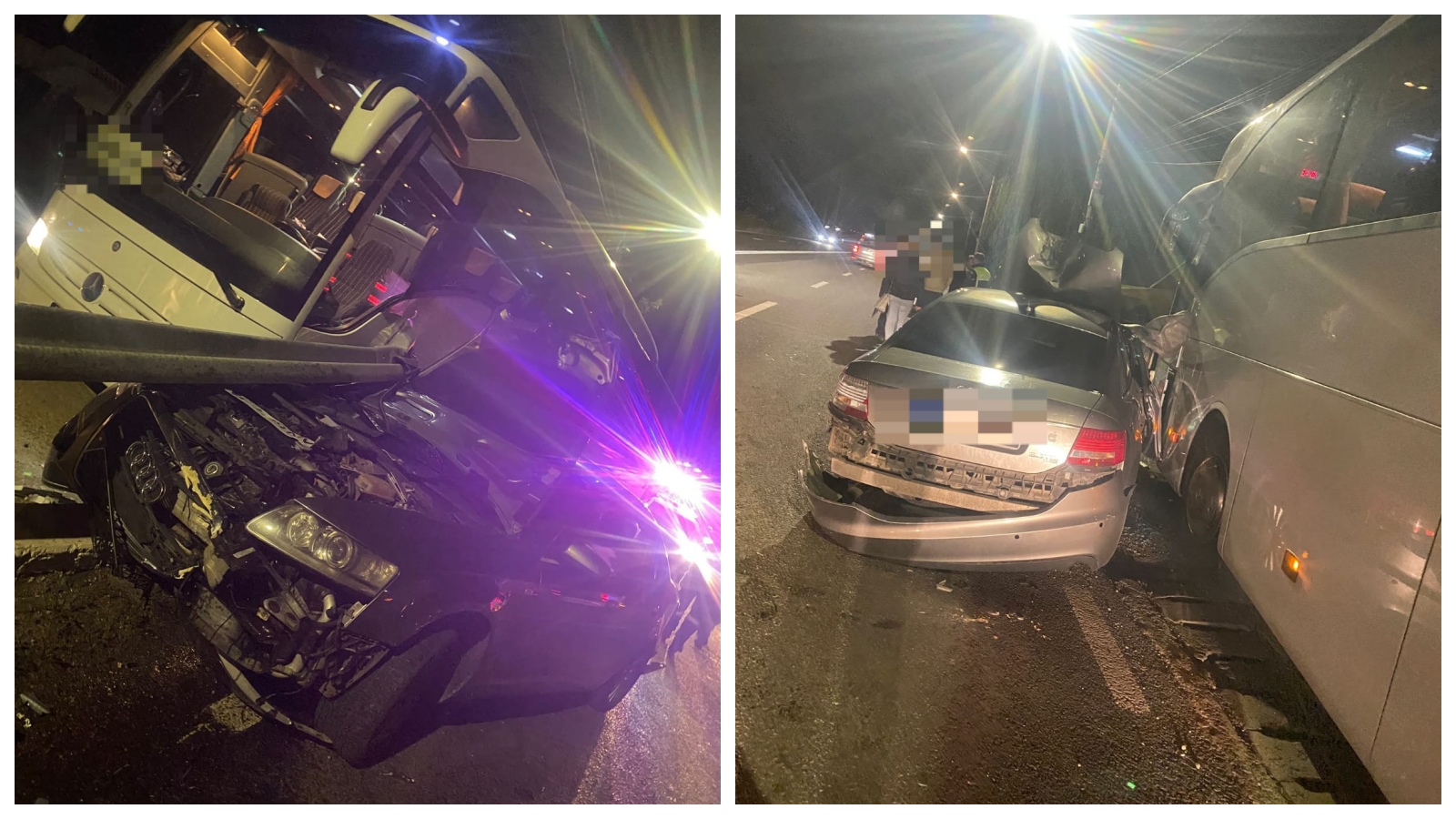 Accident între două autoturisme și un autocar la Jucu - FOTO