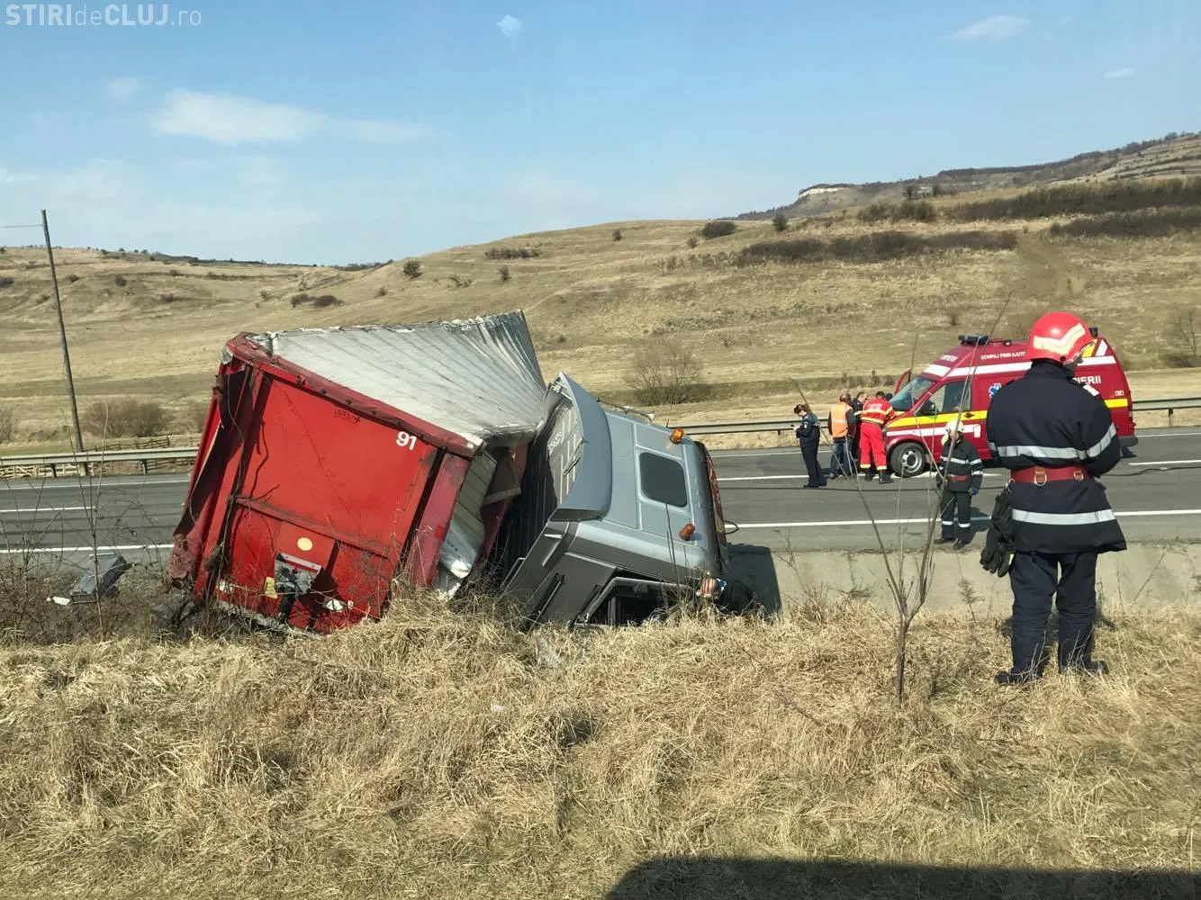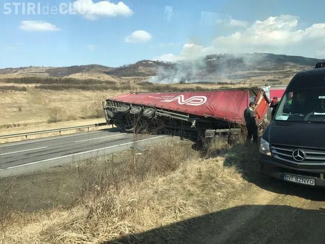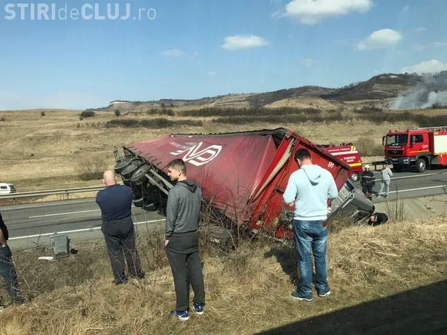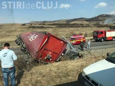 ”În jurul orei 12.30, conducătorul unui autotren, încărcat cu polistiren ar fi efectuat o depășire, iar la reintrarea pe banda de circulație ar fi pierdut controlul asupra volanului și s-a răsturnat. Totodată, acesta a acroșat un alt vehicul, pe care l-a scos în afara părții carosabile”, a declarat purtătorul de cuvânt al IPJ Cluj.