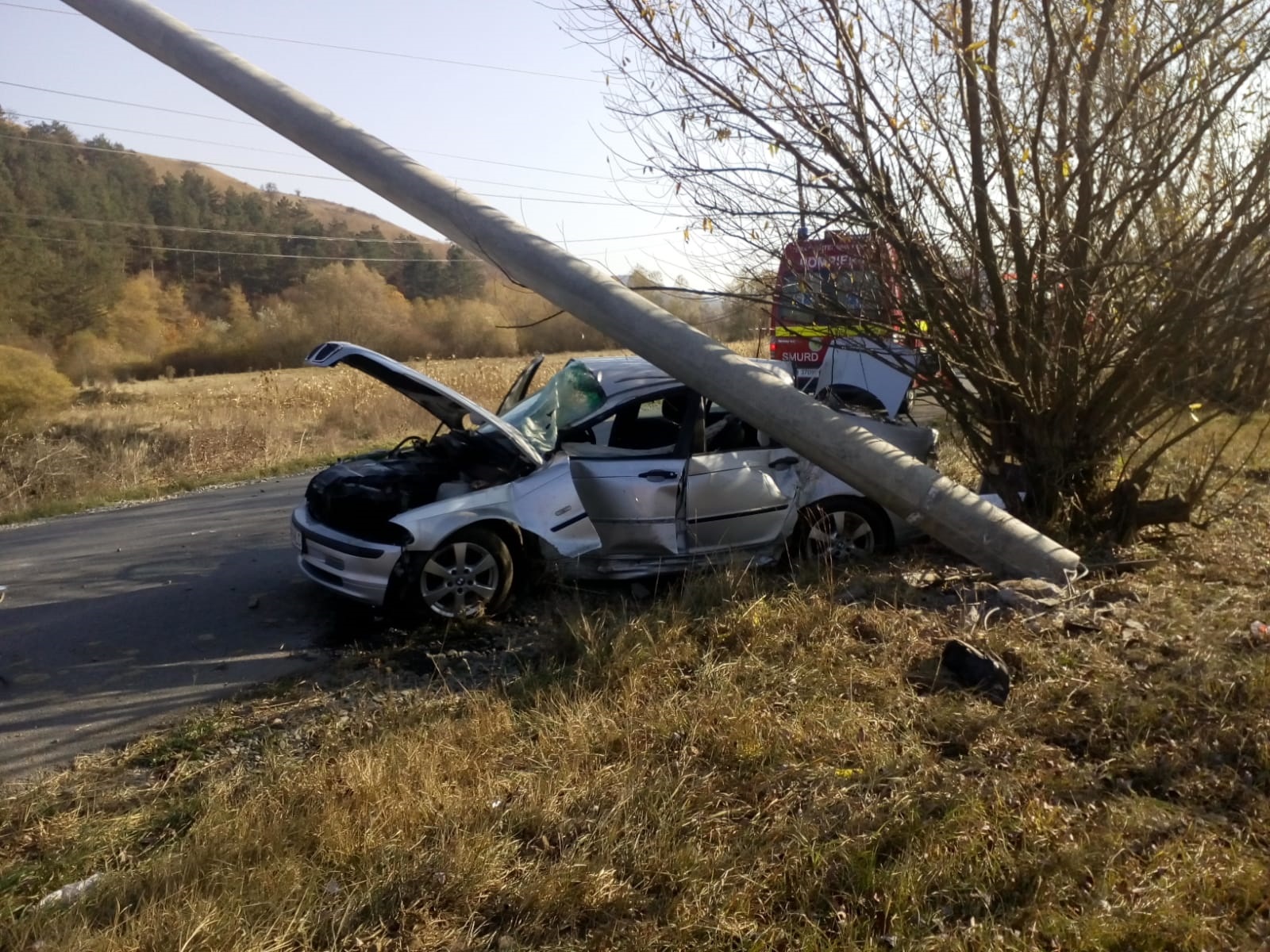 Accident între Luna și Stolna. A rupt un stâlp de medie tensiune - FOTO