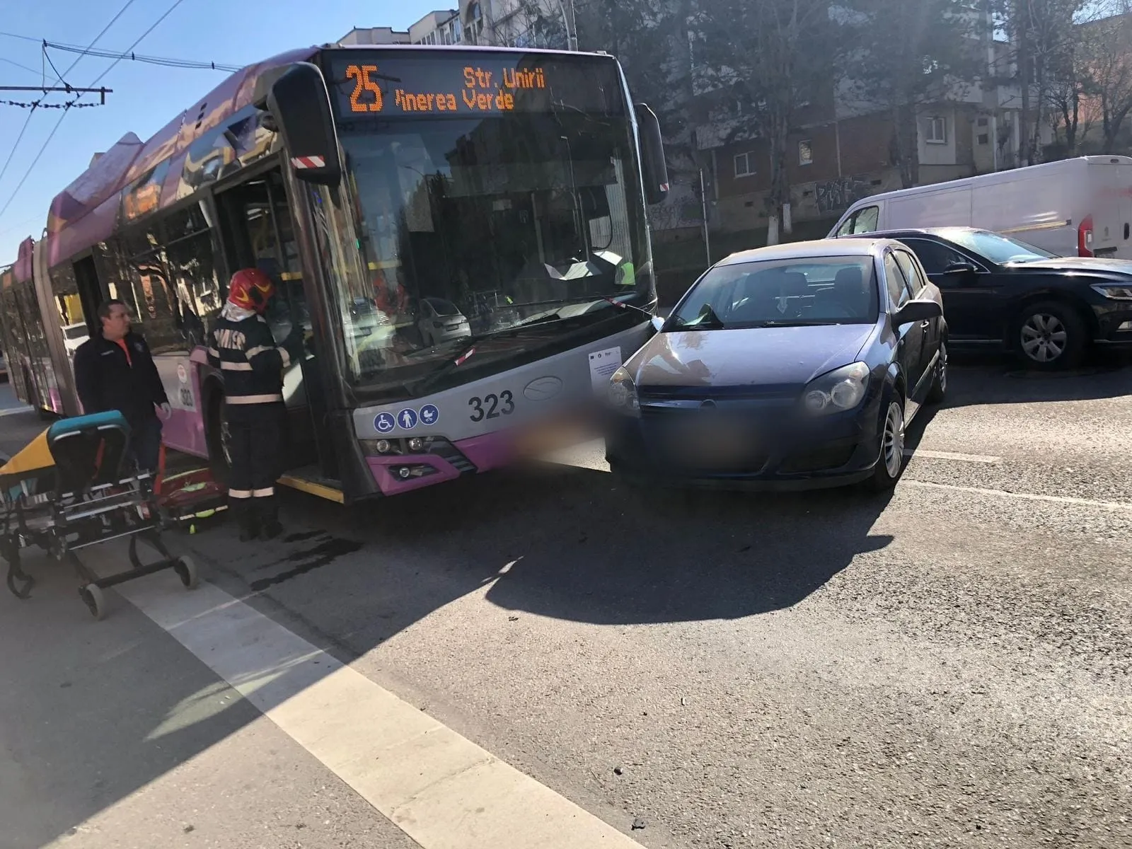 Accident între o mașină și autobuzul 25 pe Bulevardul Nicolae Titulescu din Cluj-Napoca! Două persoane, transportate la spital