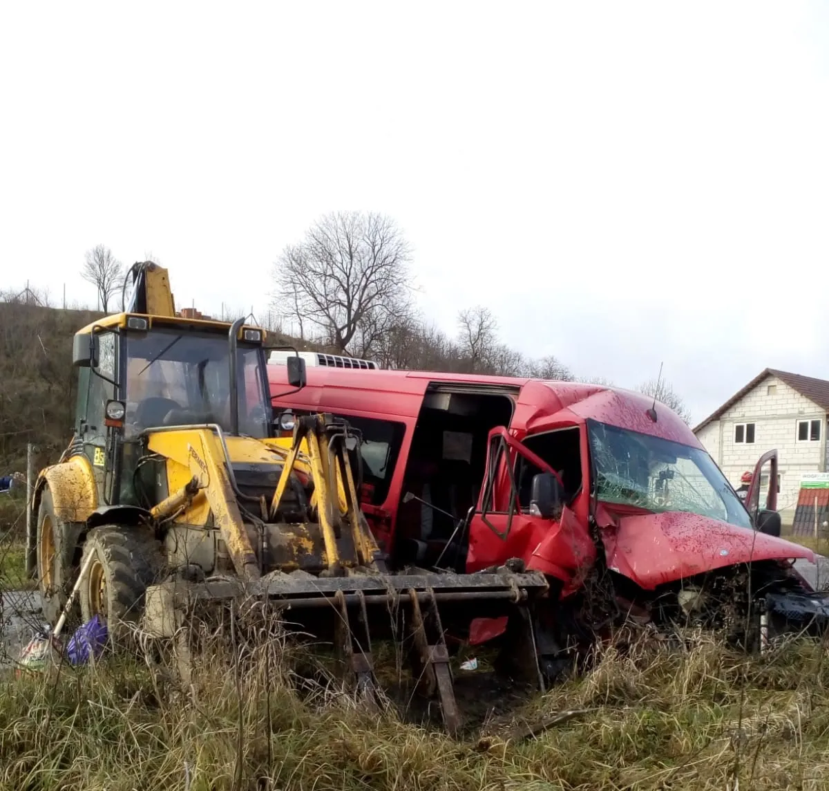Accident între un autobuz și un excavator pe un drum din Cluj! Trei persoane au fost rănite FOTO