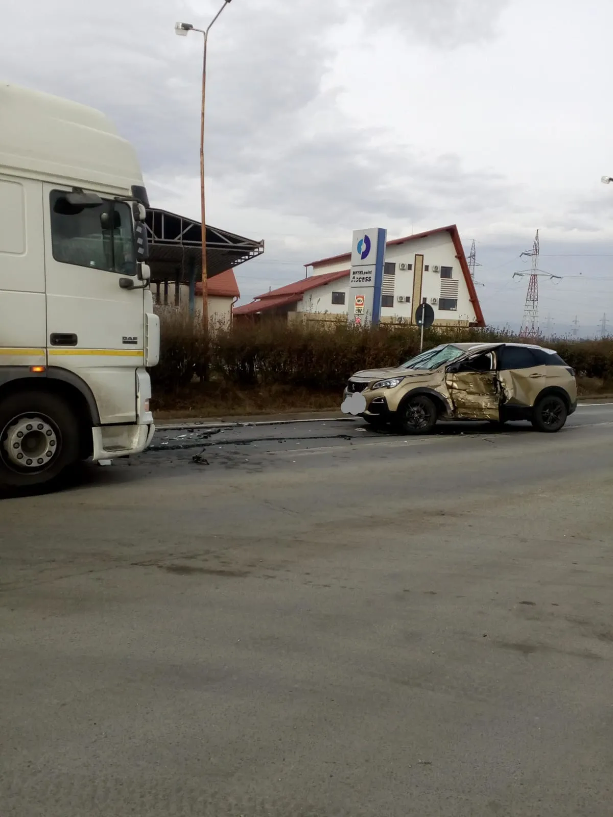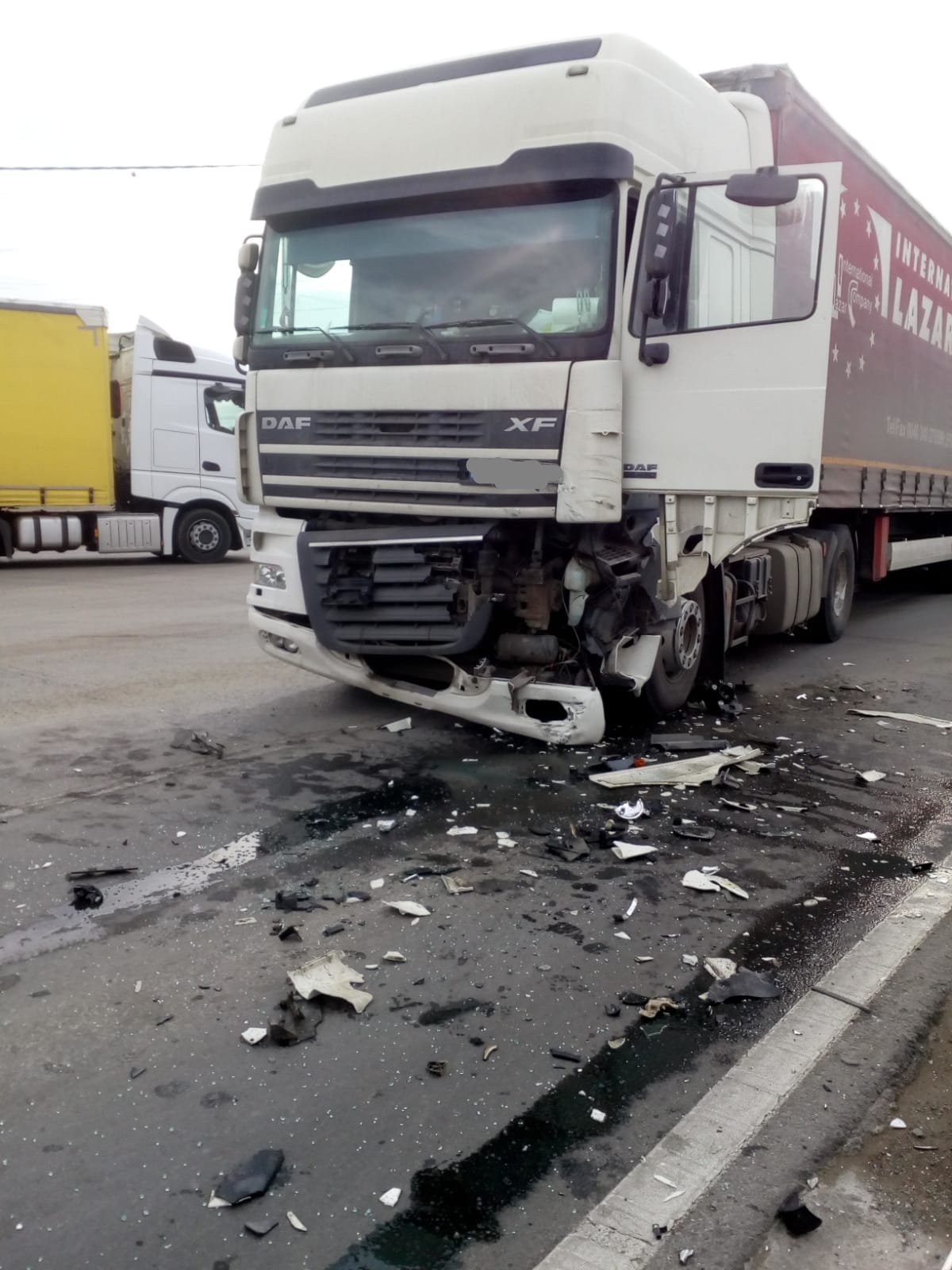 Accident între un autoturism și un TIR la ieșire din Turda. O persoană a rămas încarcerată FOTO