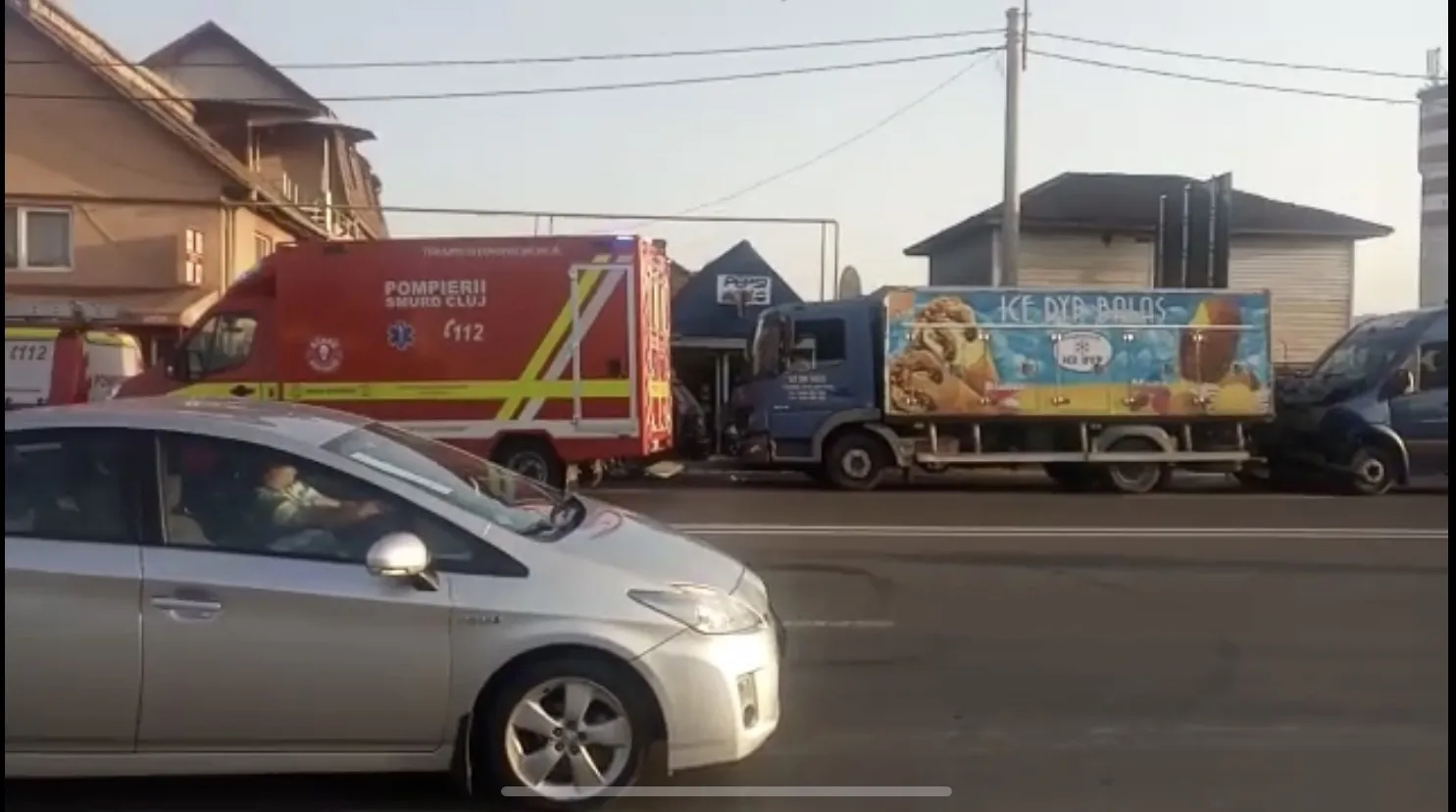 Accident între un microbuz și un camion în Someșeni. Mai multe persoane au ajuns la spital VIDEO