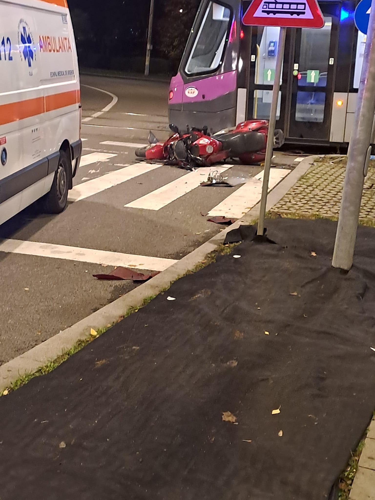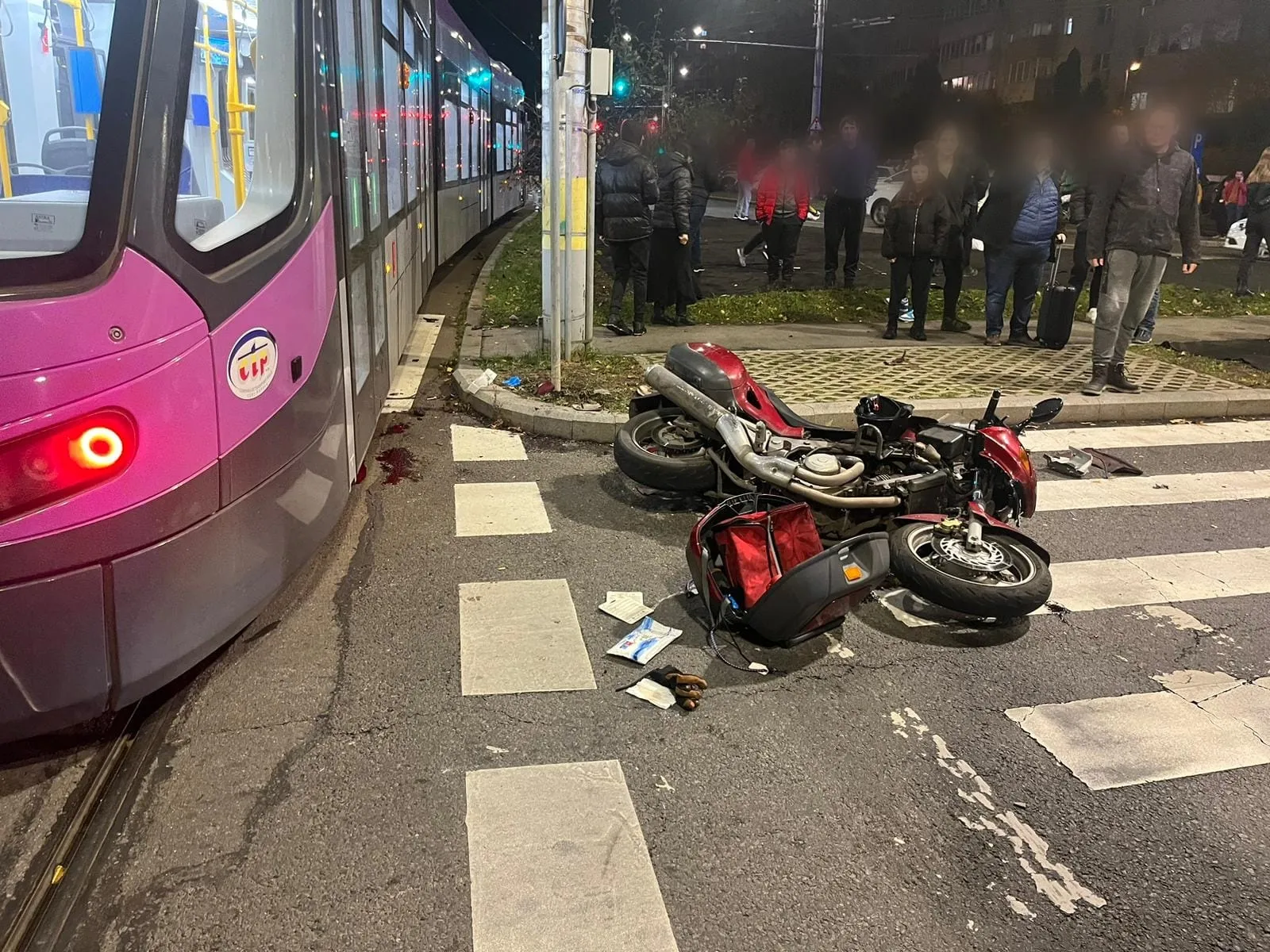 Accident intre un moticiclist si un tramvai sub Podul Calvaria - FOTO