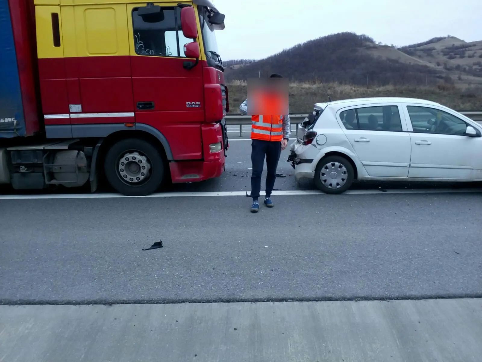Accident între un TIR și un autoturism pe Autostrada Transilvania. Un bărbat a ajuns la spital FOTO